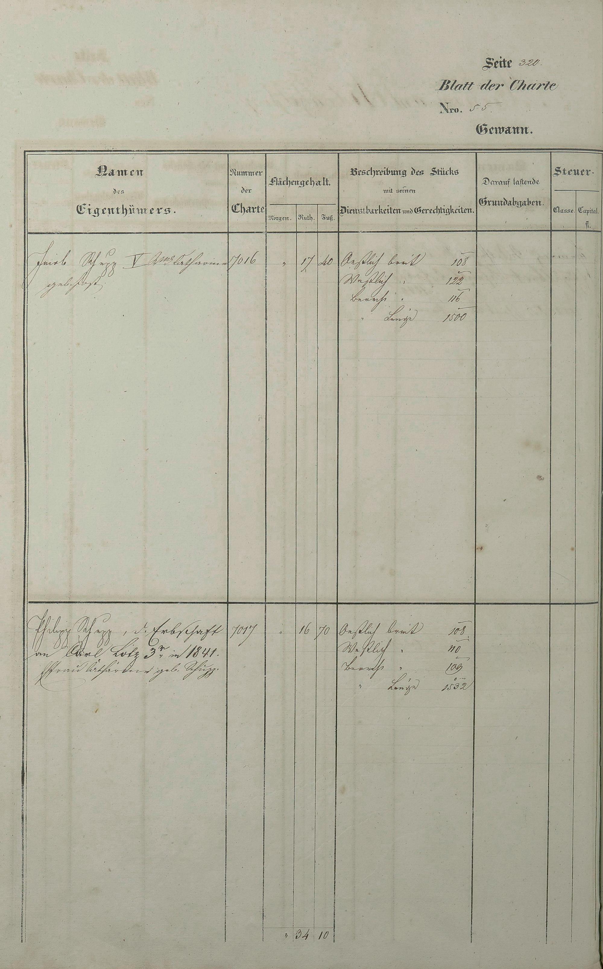 Lagerbuch 1838 aufgestellt von Geometer Gottschalk Nr. 6350 - 7107