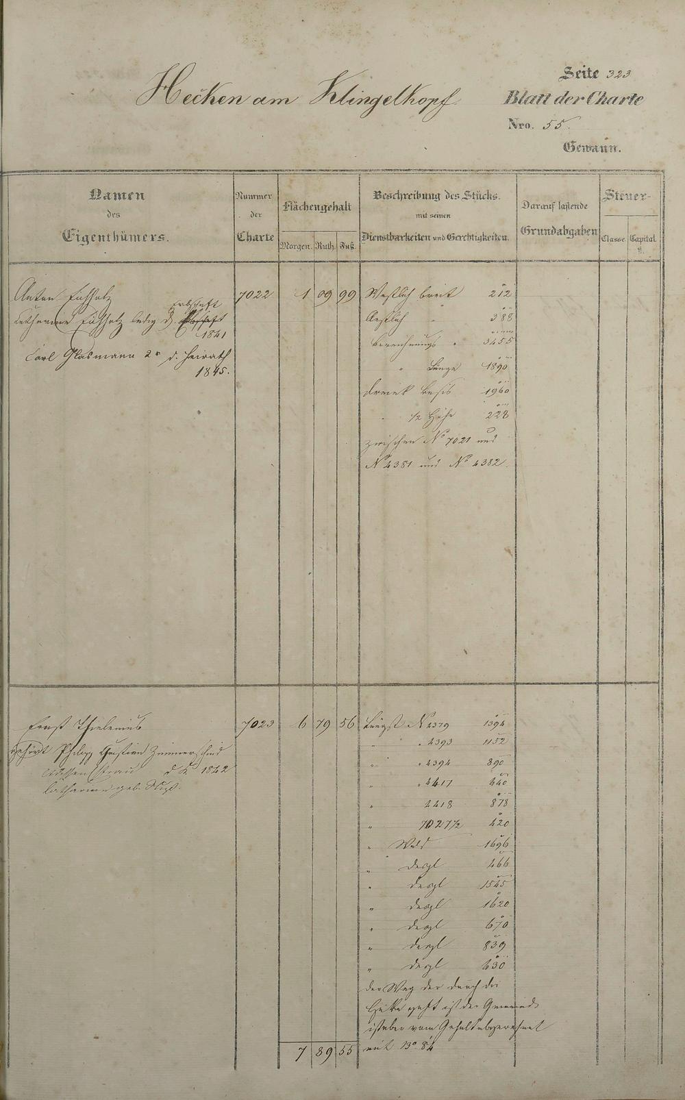 Lagerbuch 1838 aufgestellt von Geometer Gottschalk Nr. 6350 - 7107