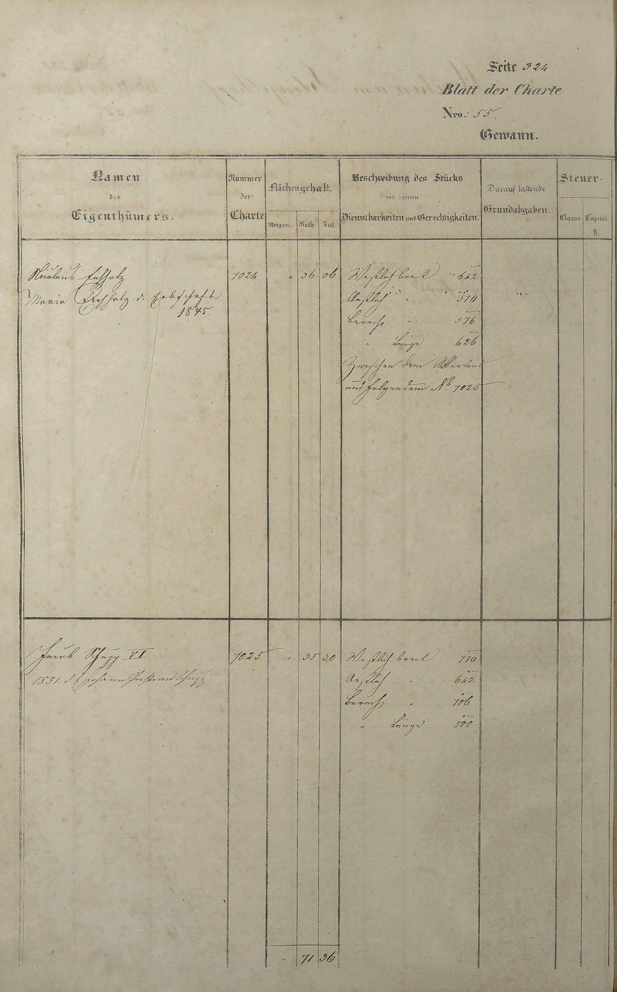 Lagerbuch 1838 aufgestellt von Geometer Gottschalk Nr. 6350 - 7107