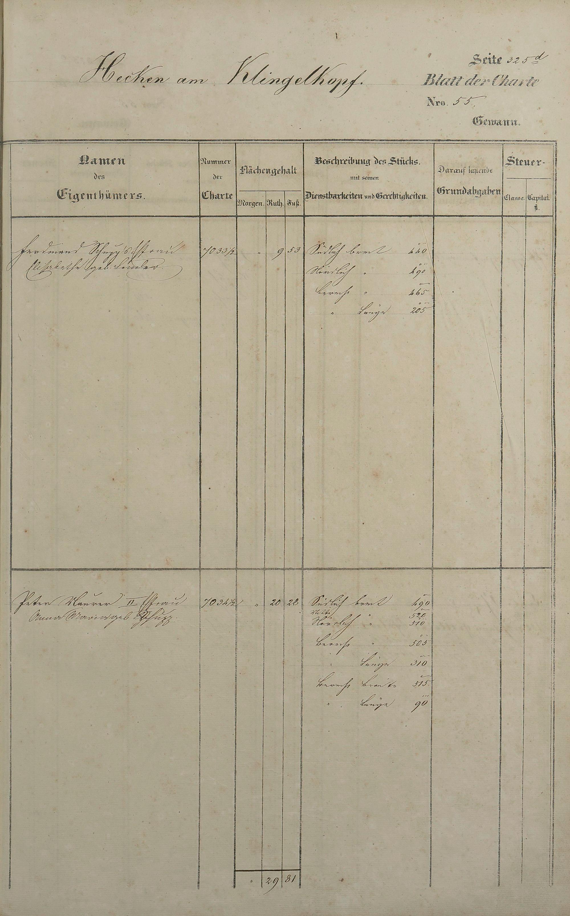 Lagerbuch 1838 aufgestellt von Geometer Gottschalk Nr. 6350 - 7107