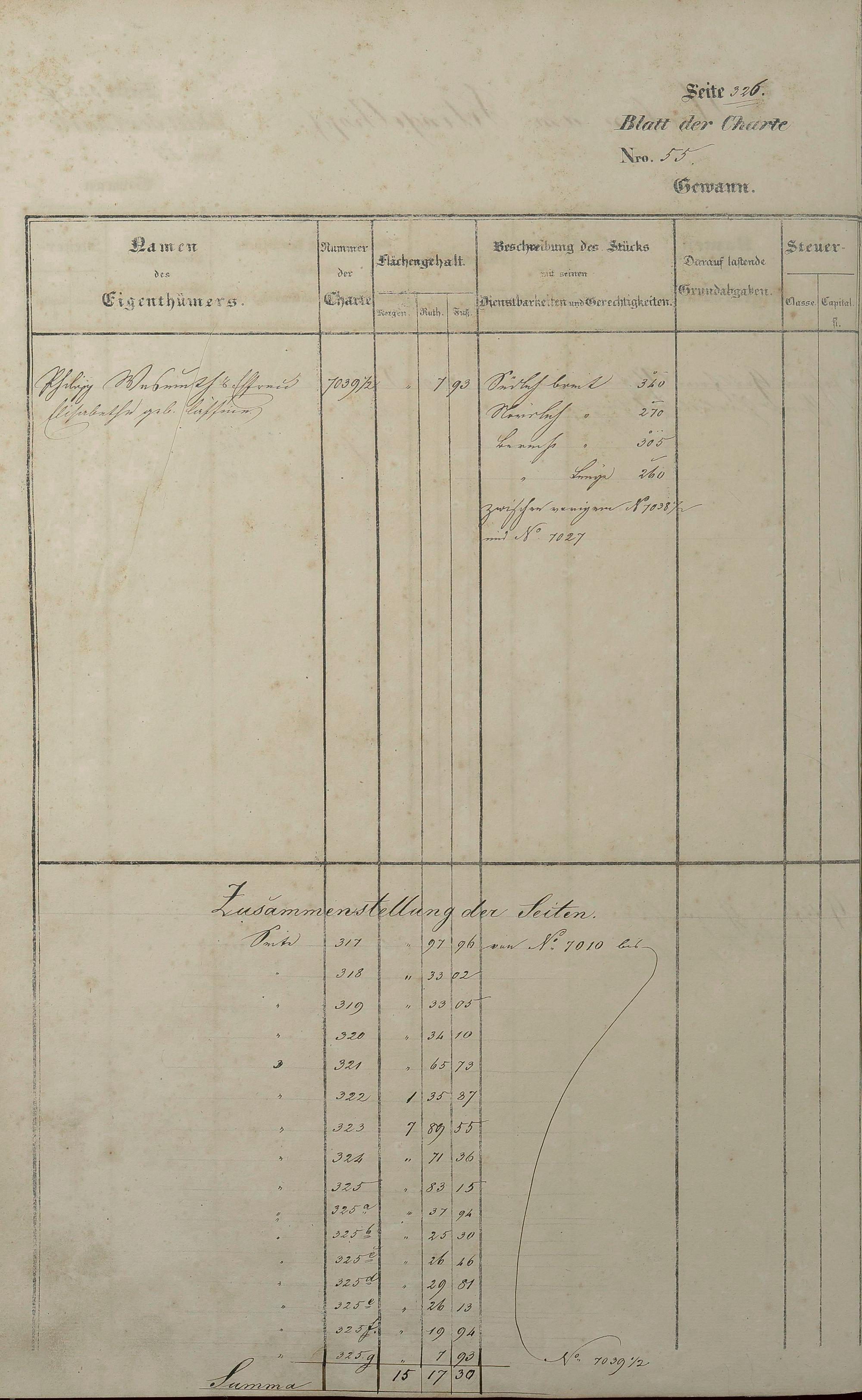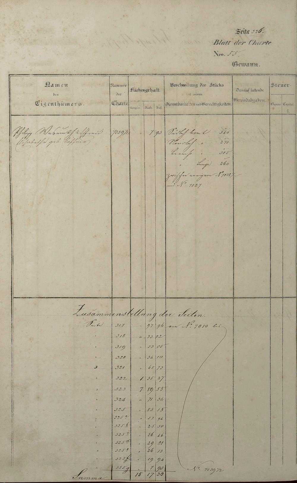 Lagerbuch 1838 aufgestellt von Geometer Gottschalk Nr. 6350 - 7107