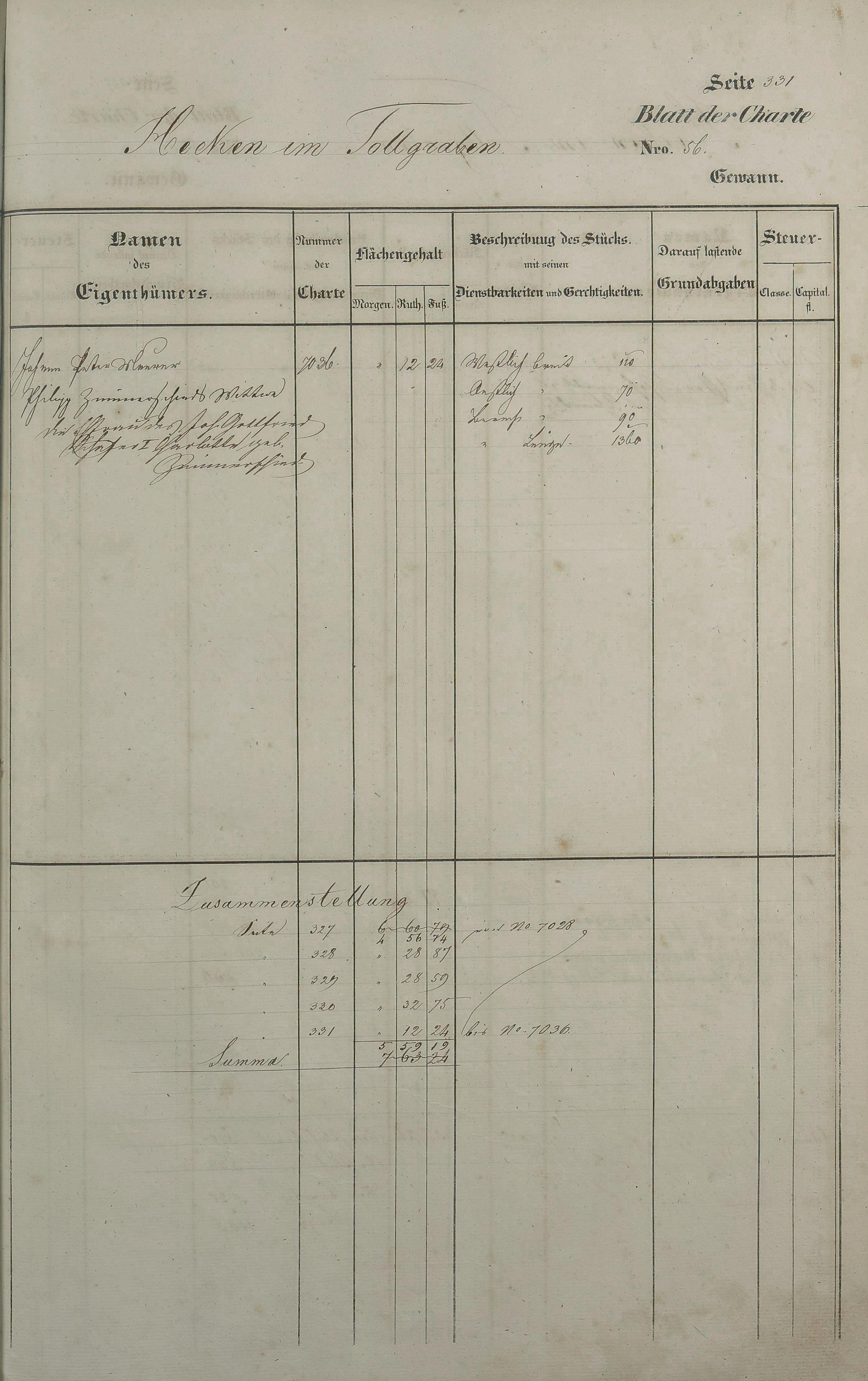 Lagerbuch 1838 aufgestellt von Geometer Gottschalk Nr. 6350 - 7107