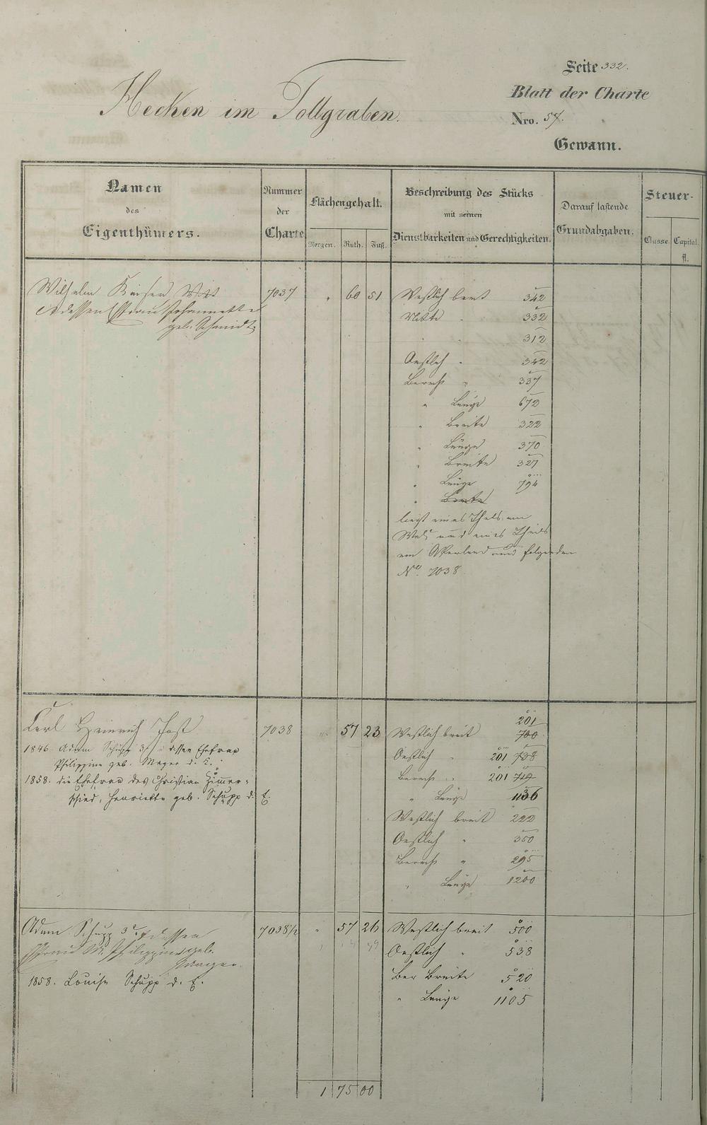 Lagerbuch 1838 aufgestellt von Geometer Gottschalk Nr. 6350 - 7107