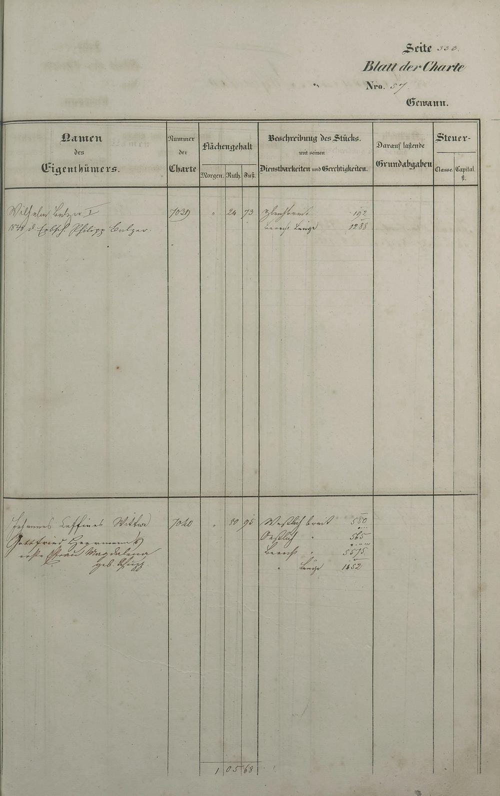 Lagerbuch 1838 aufgestellt von Geometer Gottschalk Nr. 6350 - 7107