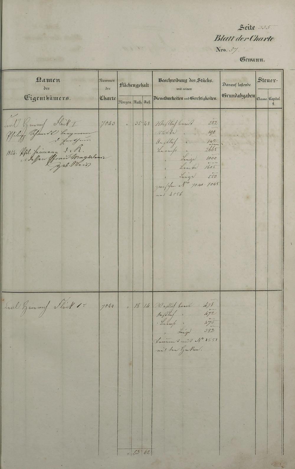Lagerbuch 1838 aufgestellt von Geometer Gottschalk Nr. 6350 - 7107