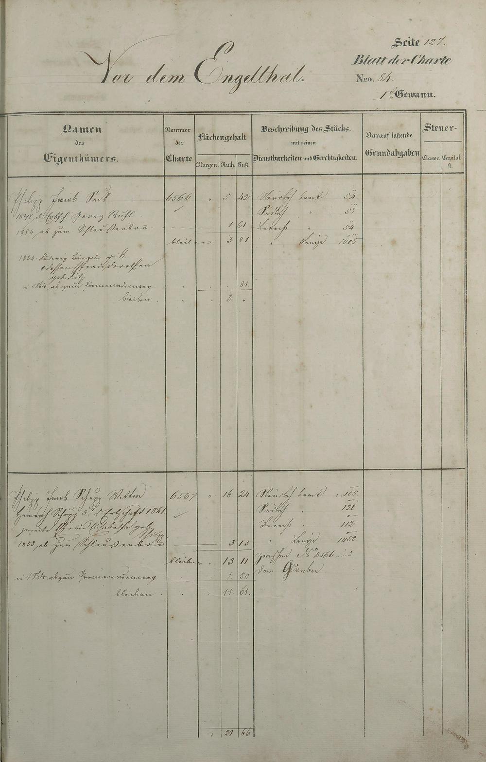 Lagerbuch 1838 aufgestellt von Geometer Gottschalk Nr. 6350 - 7107