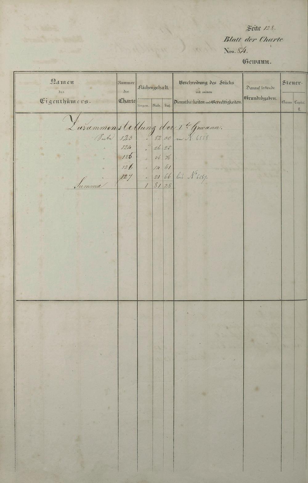Lagerbuch 1838 aufgestellt von Geometer Gottschalk Nr. 6350 - 7107