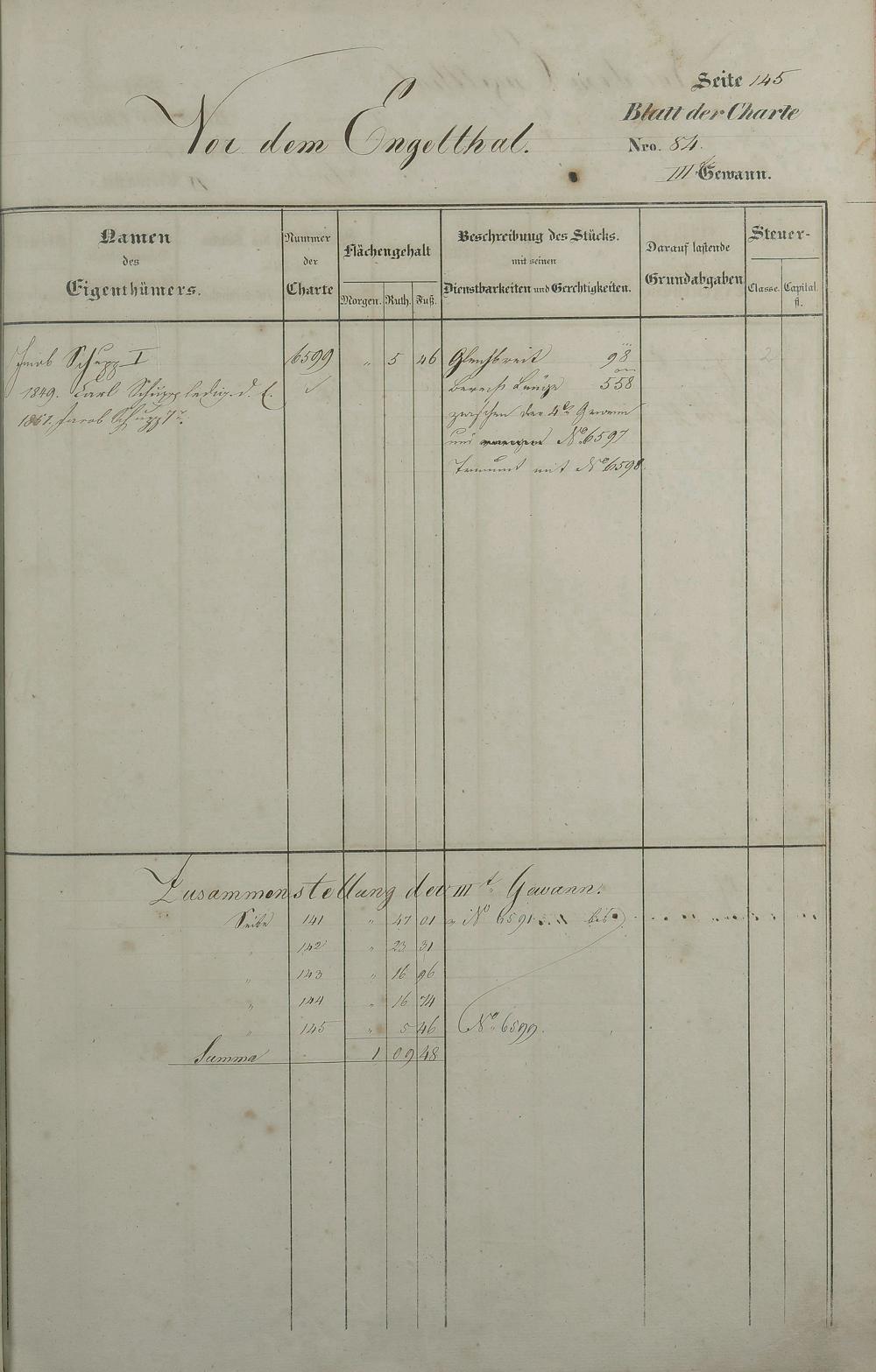 Lagerbuch 1838 aufgestellt von Geometer Gottschalk Nr. 6350 - 7107
