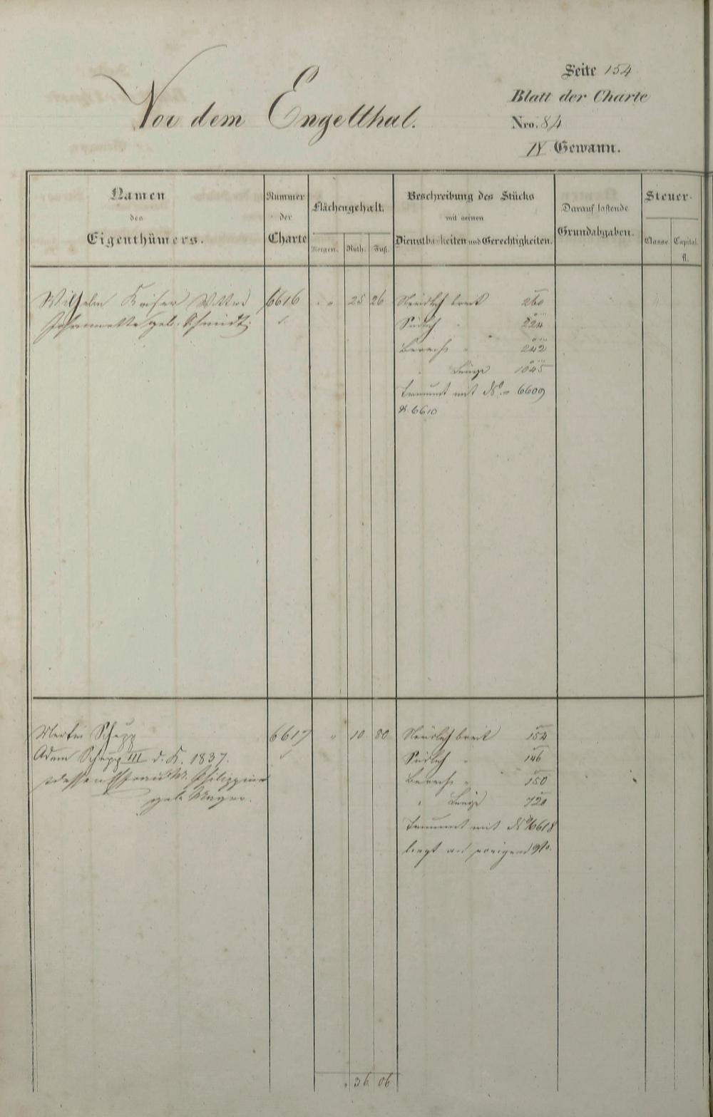 Lagerbuch 1838 aufgestellt von Geometer Gottschalk Nr. 6350 - 7107