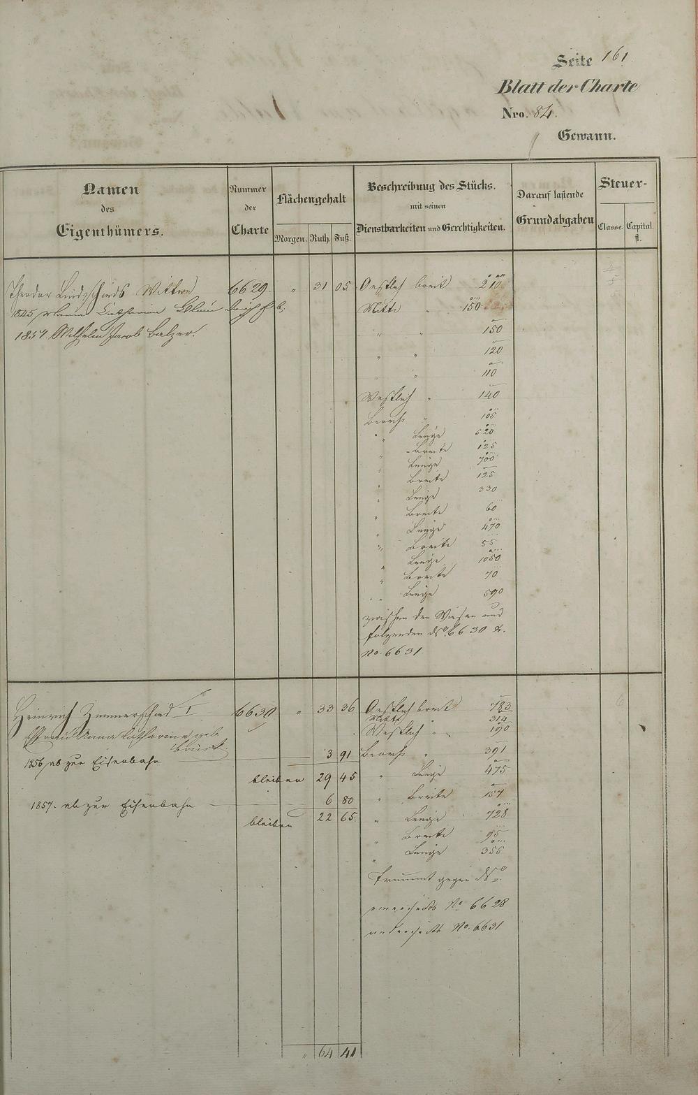 Lagerbuch 1838 aufgestellt von Geometer Gottschalk Nr. 6350 - 7107