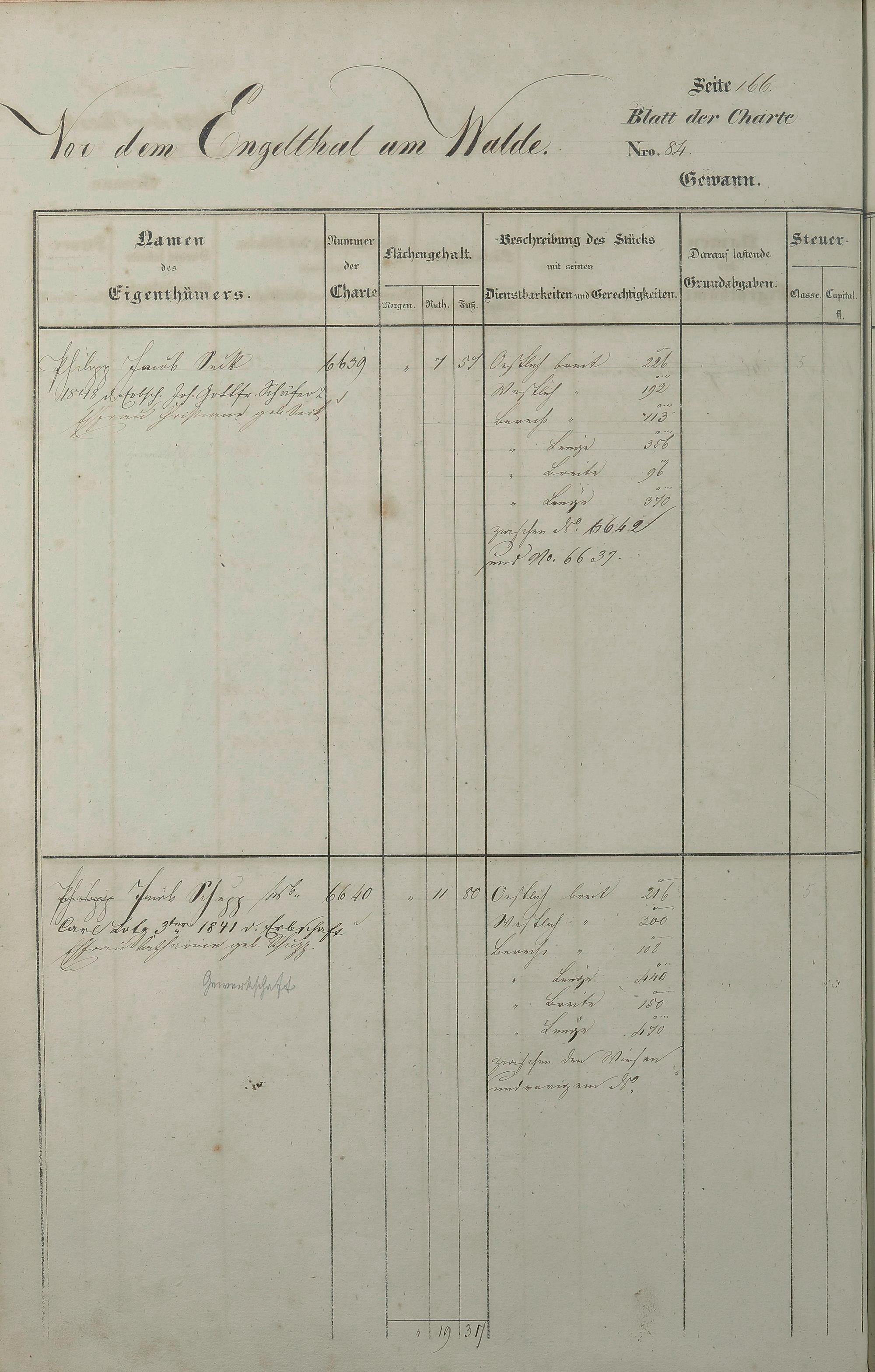 Lagerbuch 1838 aufgestellt von Geometer Gottschalk Nr. 6350 - 7107