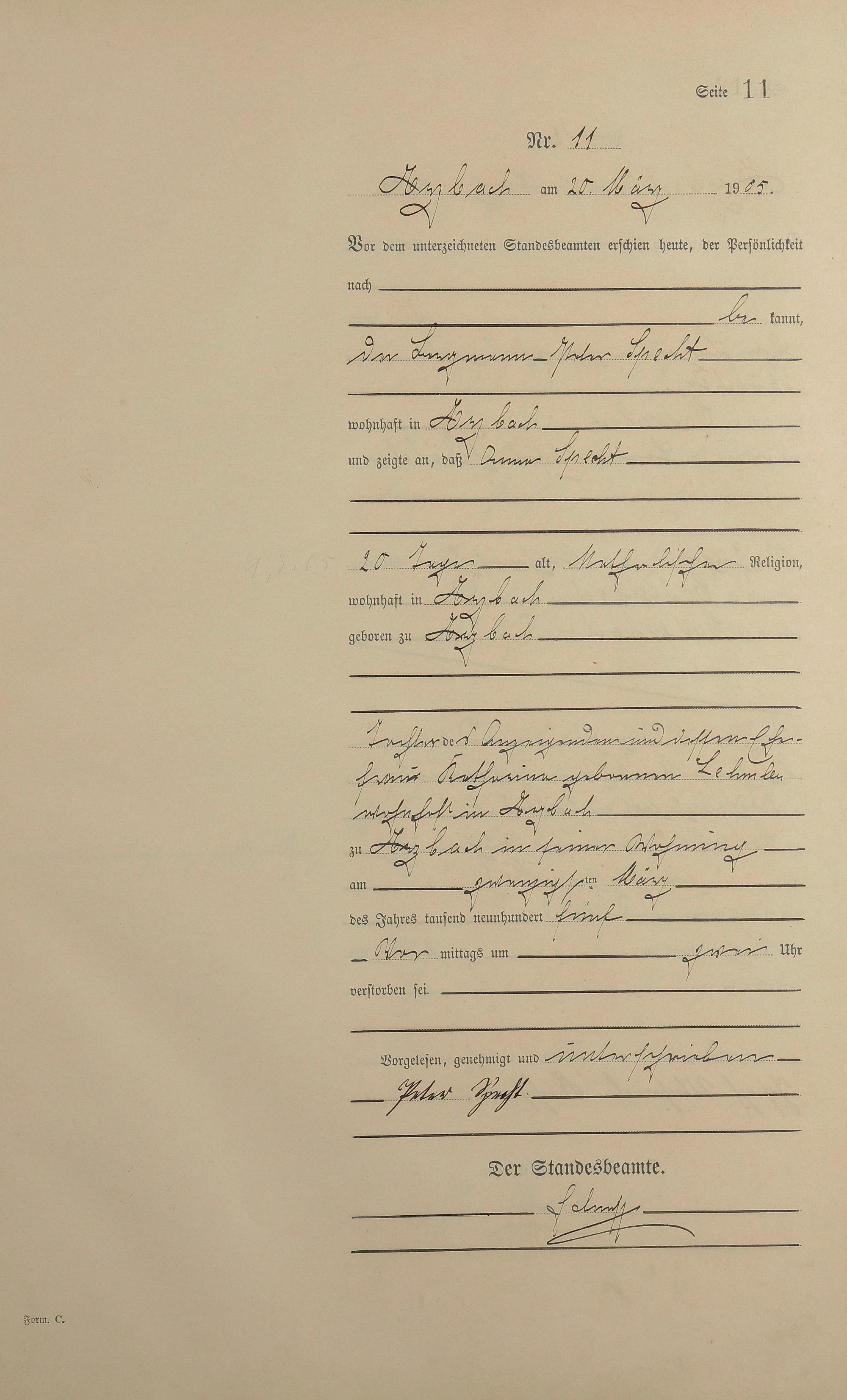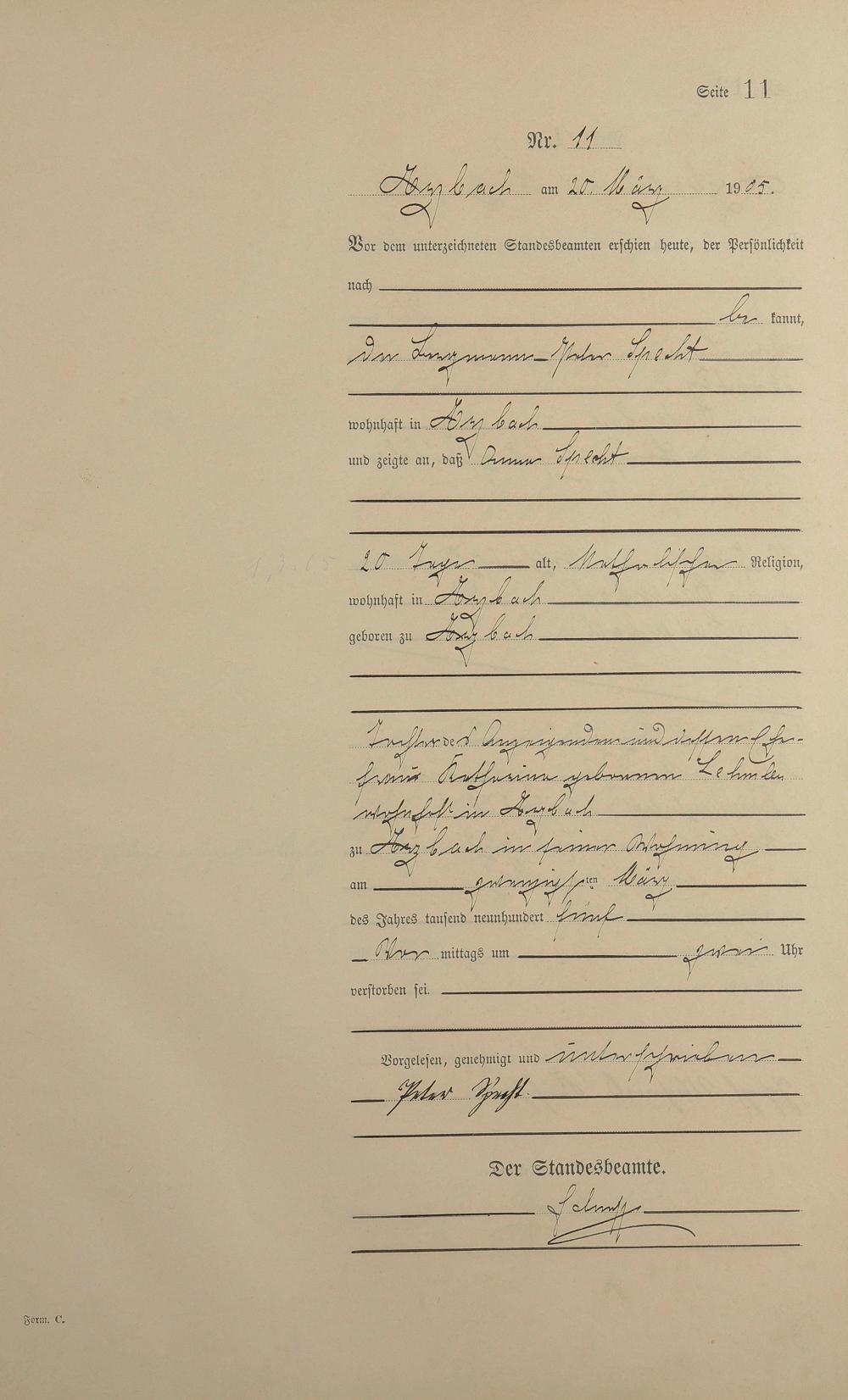 Sterberegister 1905