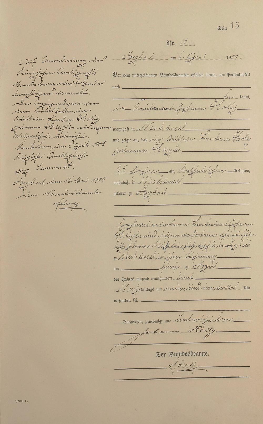 165/1: Sterberegister 1905