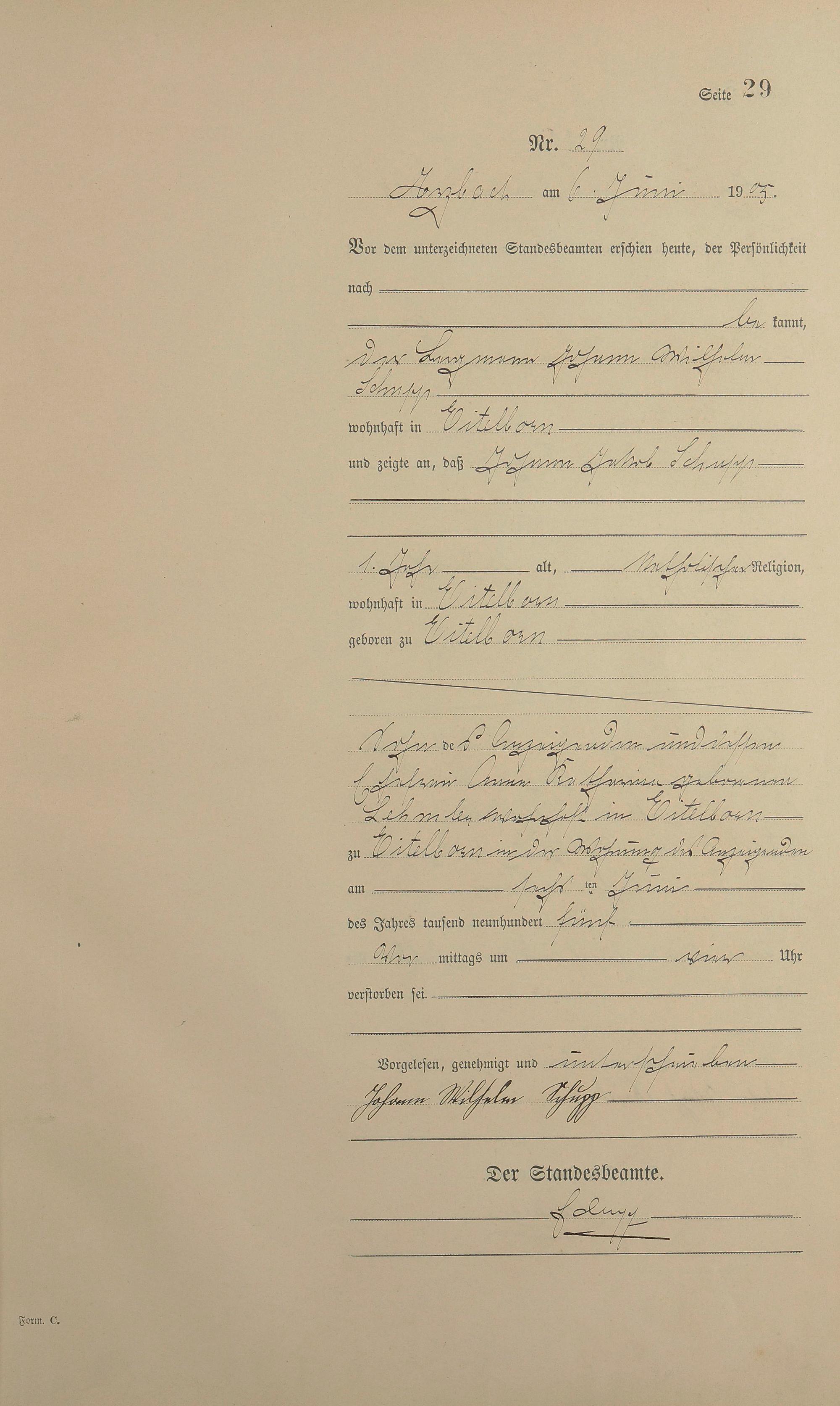 Sterberegister 1905