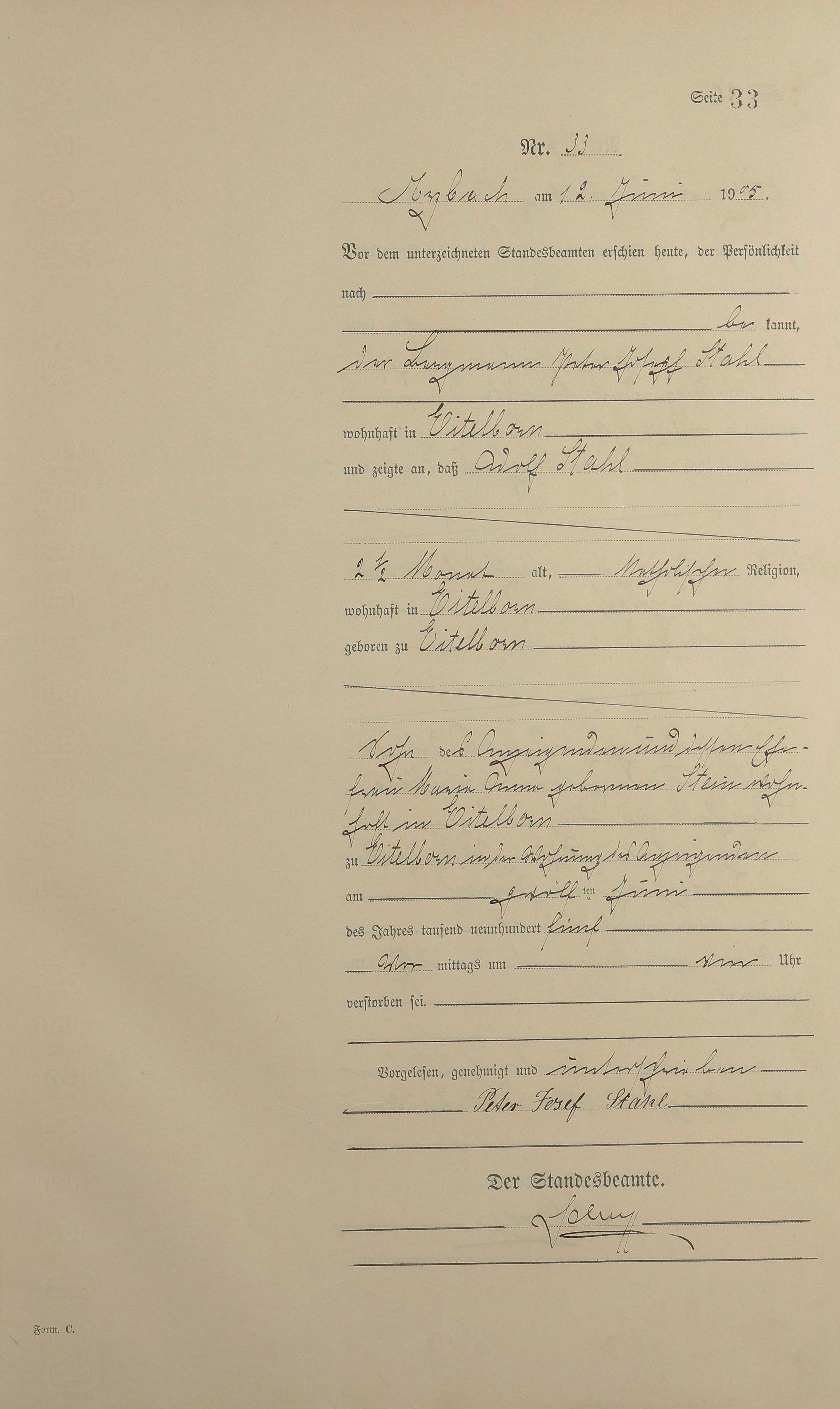 Sterberegister 1905