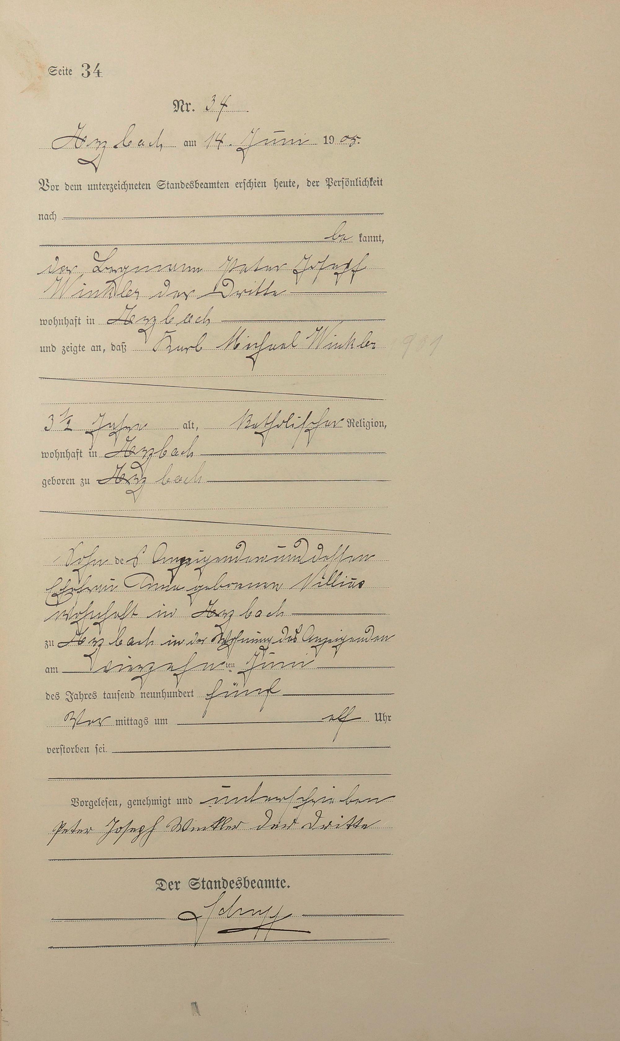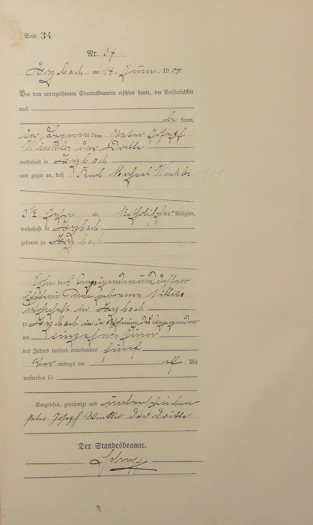 165/1: Sterberegister 1905