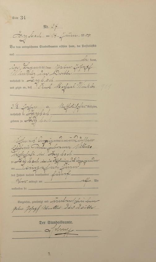 Sterberegister 1905