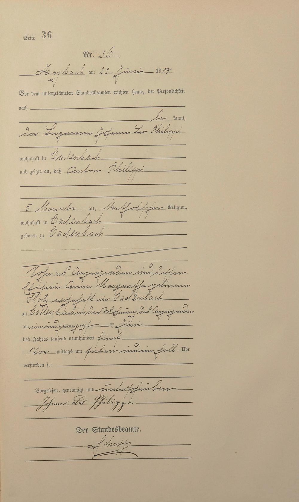 Sterberegister 1905