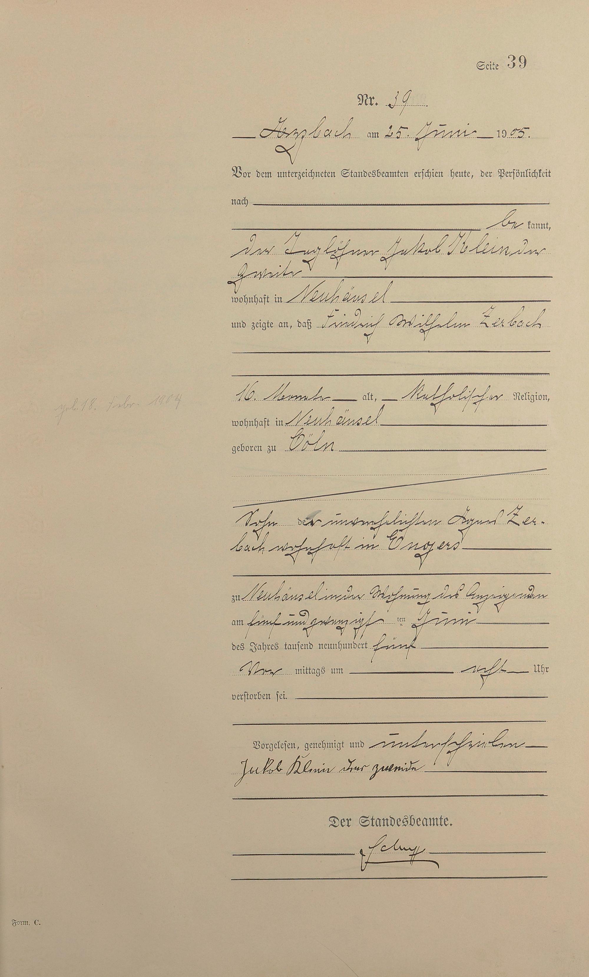 Sterberegister 1905