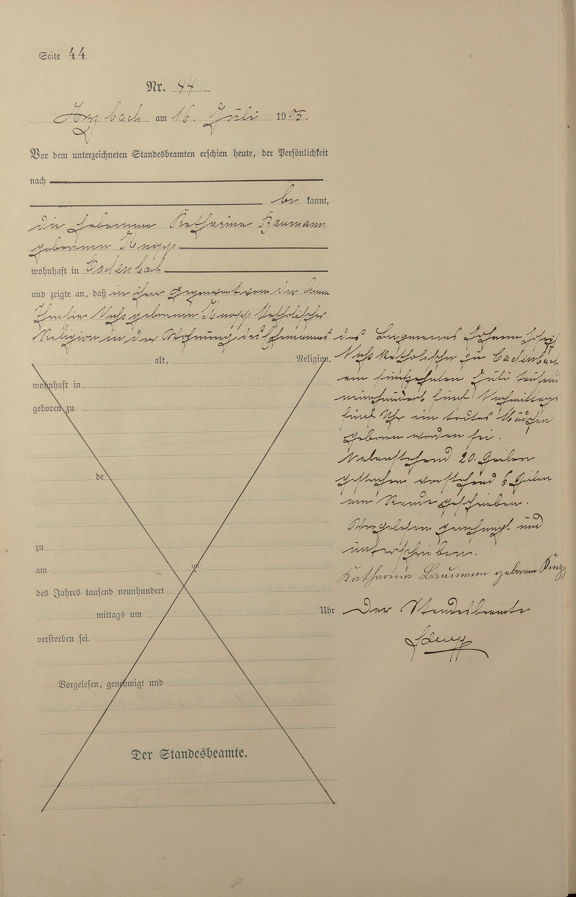 Sterberegister 1905
