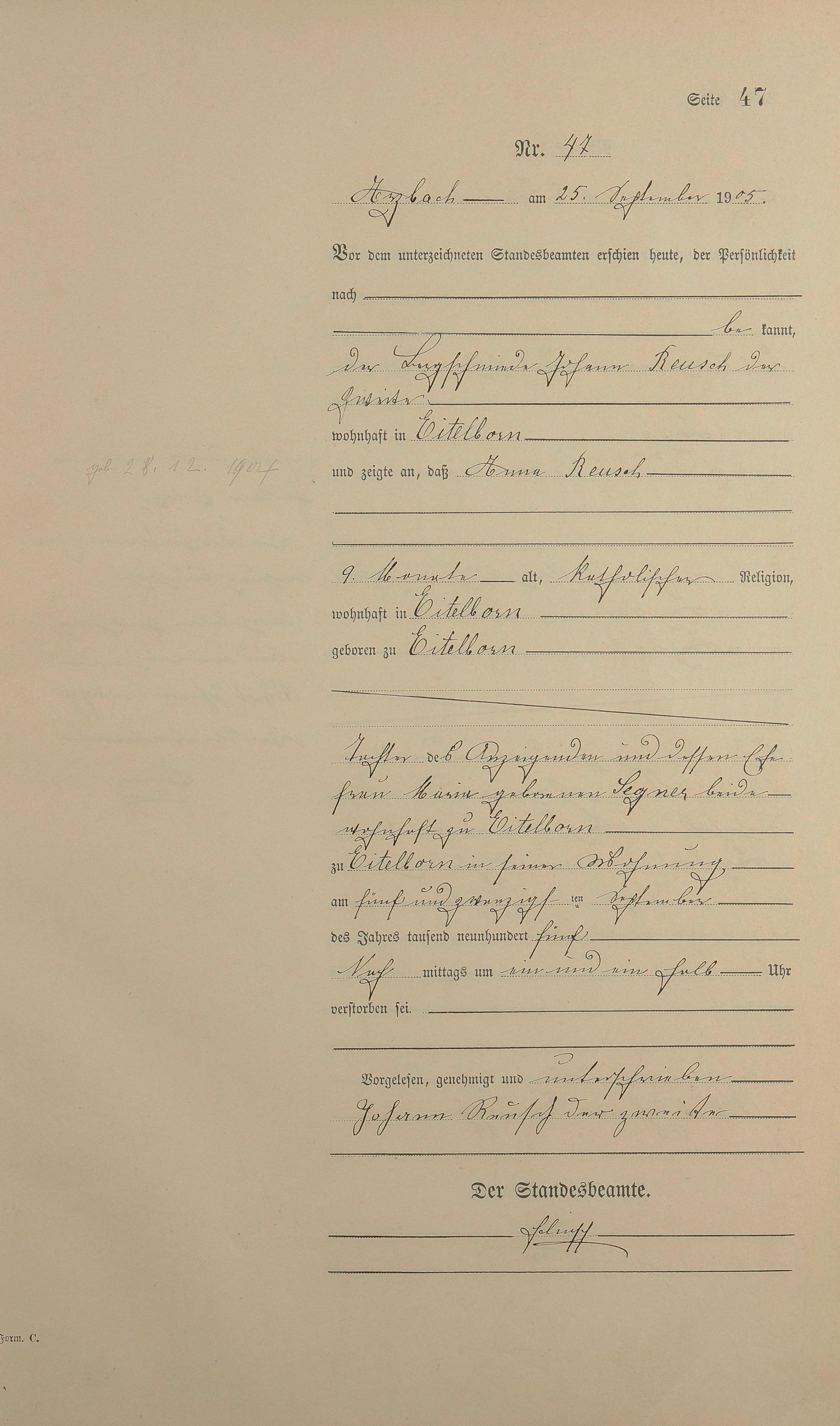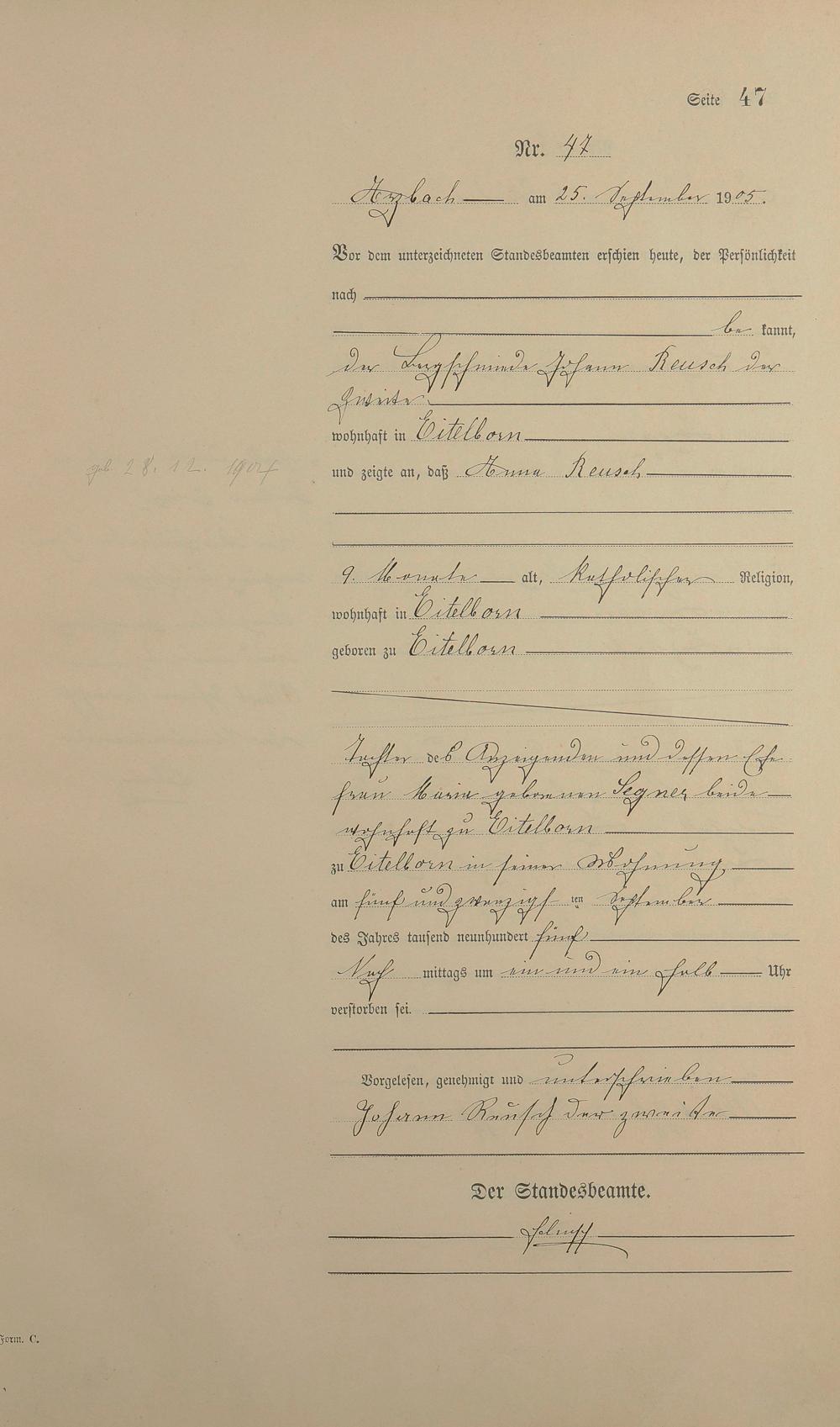 Sterberegister 1905