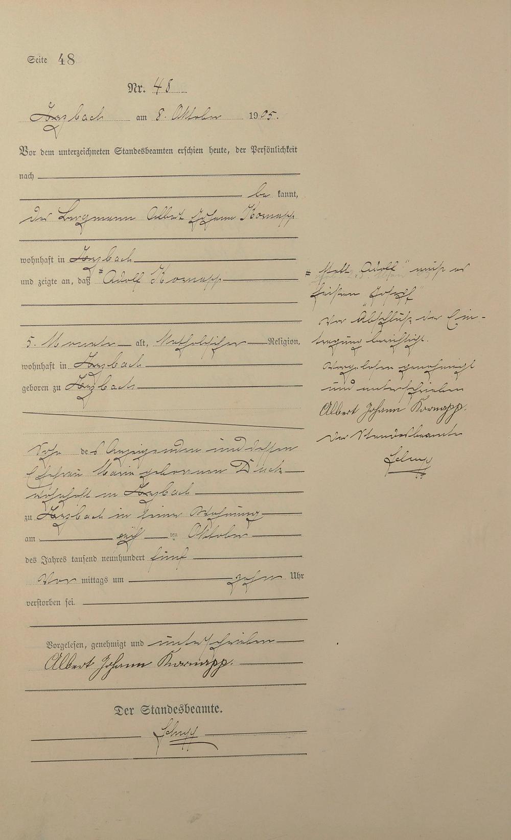 Sterberegister 1905