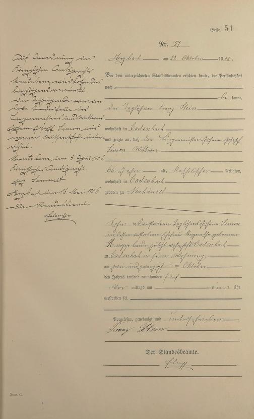 Sterberegister 1905