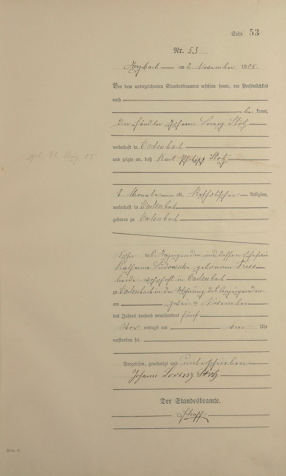 Sterberegister 1905