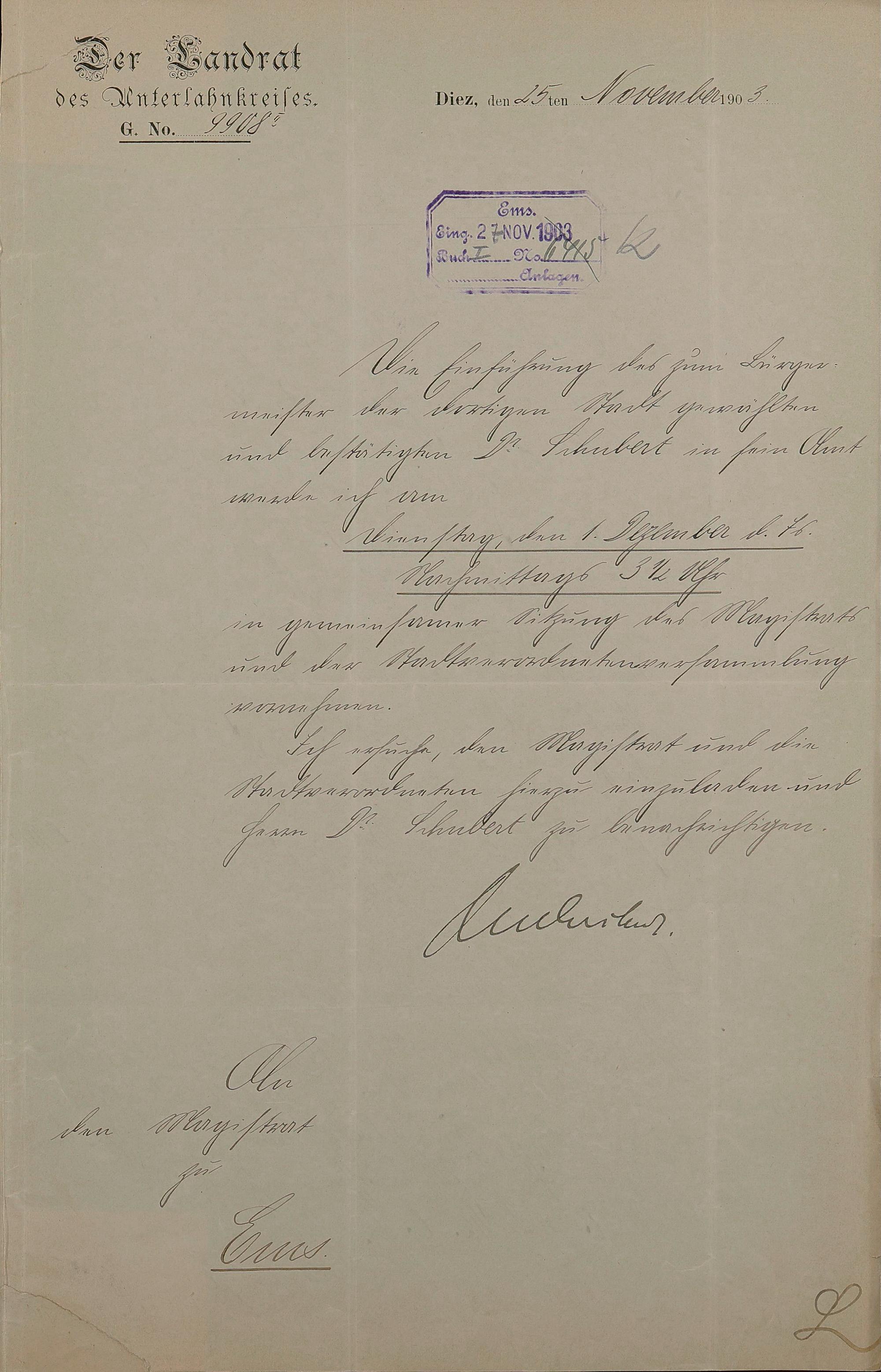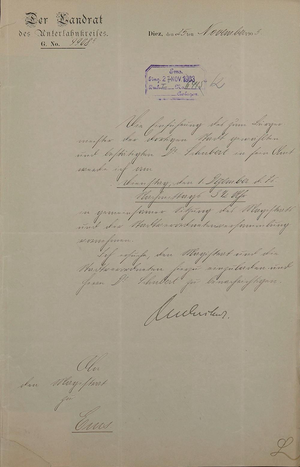 Schubert Eugen Dr. - Bürgermeister Bad Ems 1903 - 1922