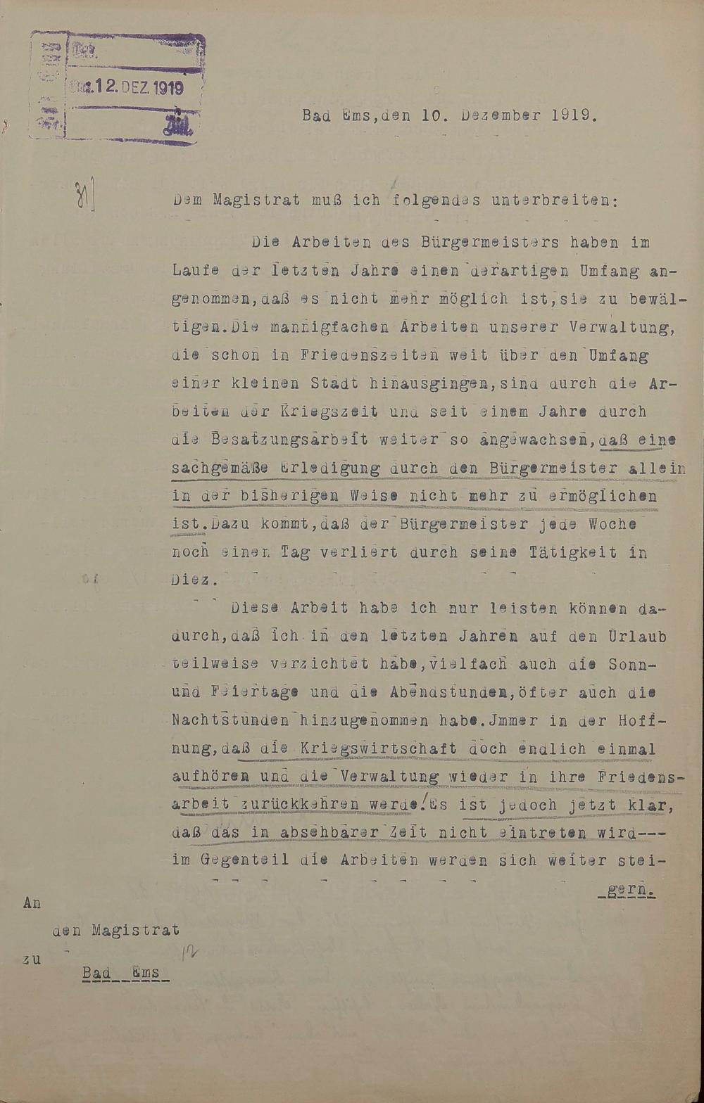 Schubert Eugen Dr. - Bürgermeister Bad Ems 1903 - 1922