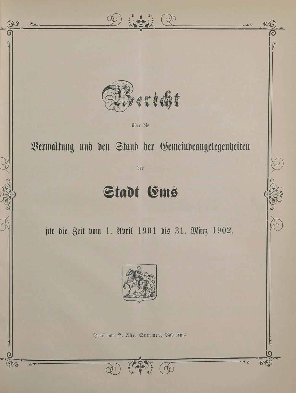 Bericht über die Verwaltung und den Stand der Gemeindeangelegenheiten der Stadt Ems für die Zeit vom 1. April 1901 bis 31. März 1902