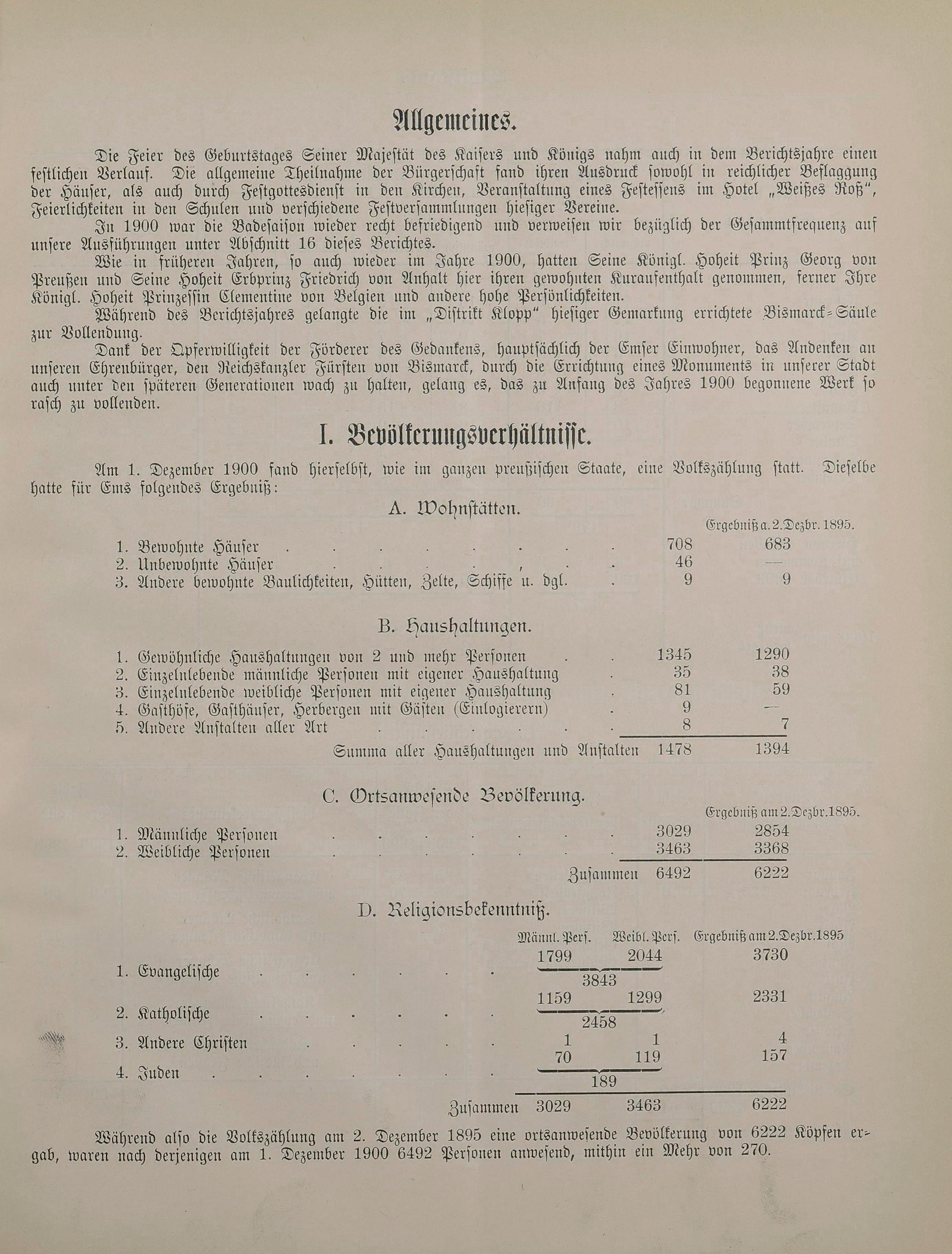Bericht über die Verwaltung und den Stand der Gemeindeangelegenheiten der Stadt Ems für die Zeit vom 1. April 1900 bis 31. März 1901
