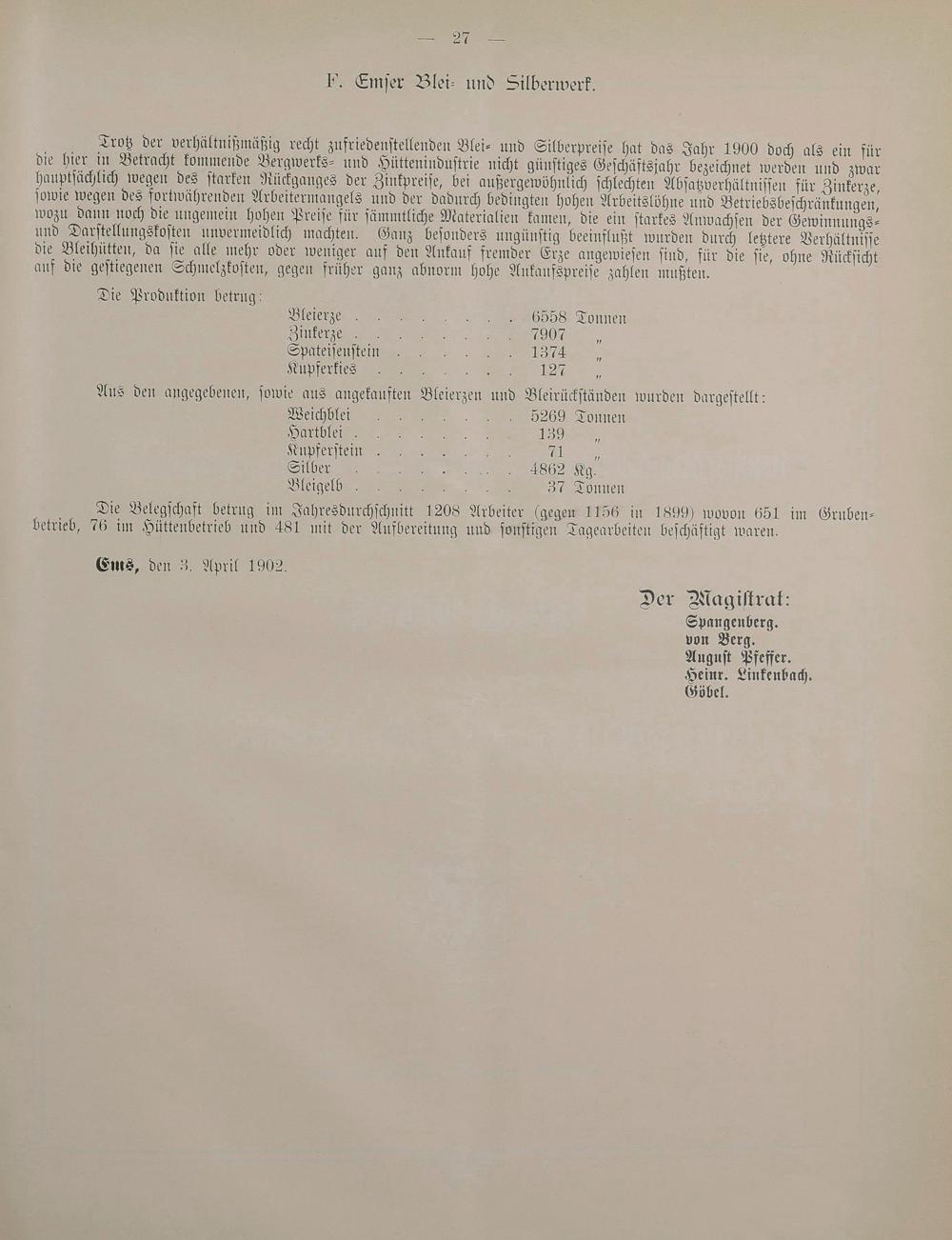 Bericht über die Verwaltung und den Stand der Gemeindeangelegenheiten der Stadt Ems für die Zeit vom 1. April 1900 bis 31. März 1901