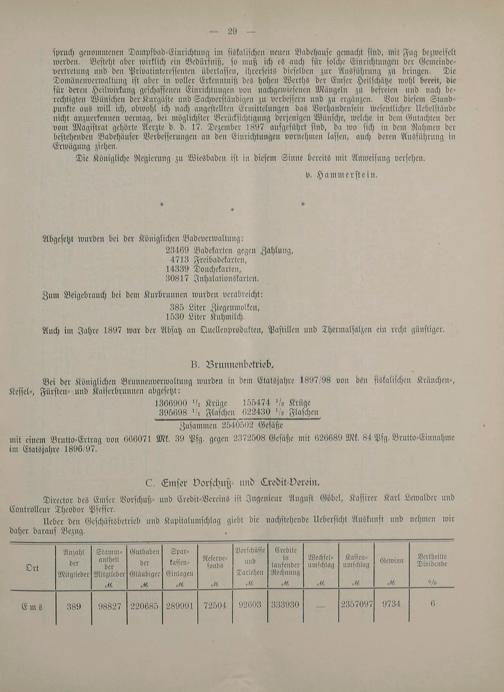 Bericht über die Verwaltung und den Stand der Gemeindeangelegenheiten der Stadt Ems für das Jahr 1897 - 1898