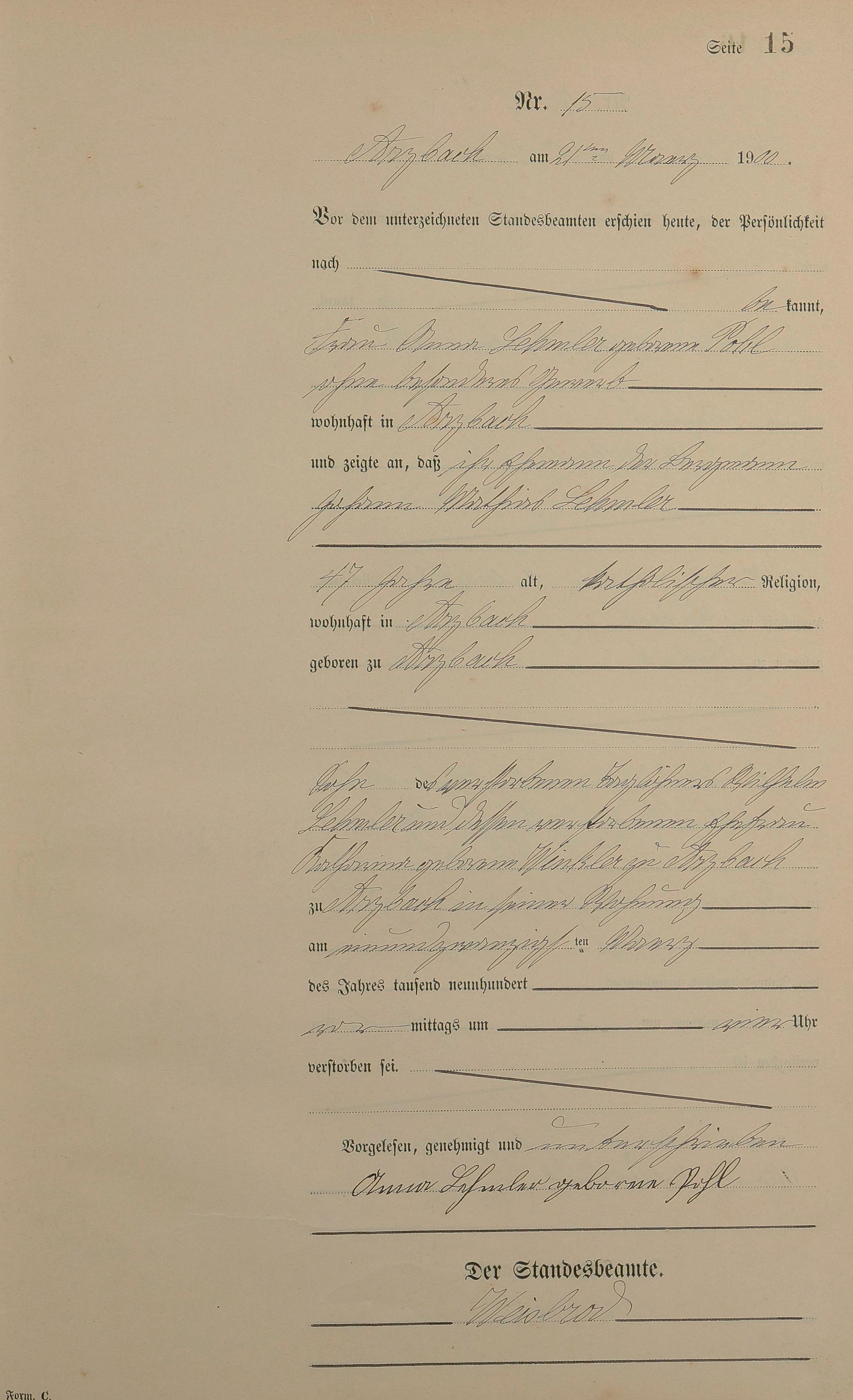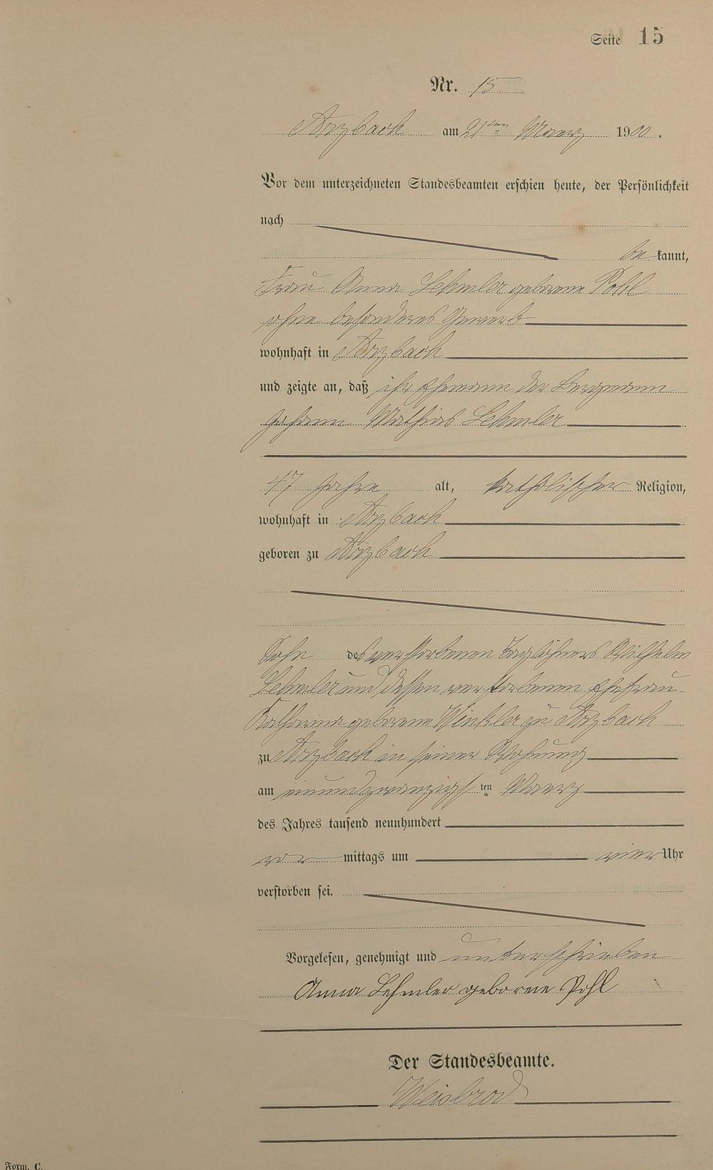 164/3: Sterberegister 1900