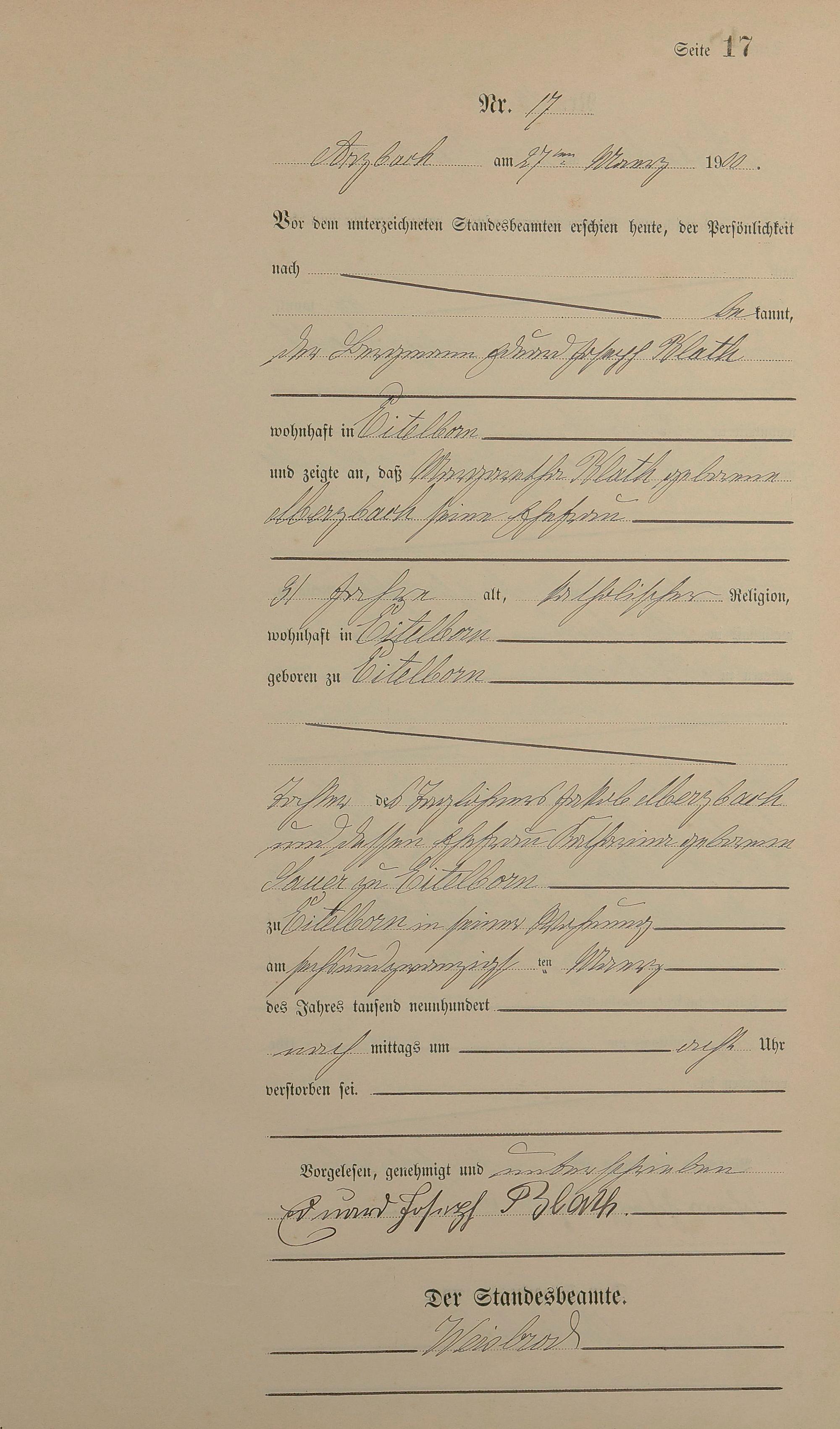 164/3: Sterberegister 1900
