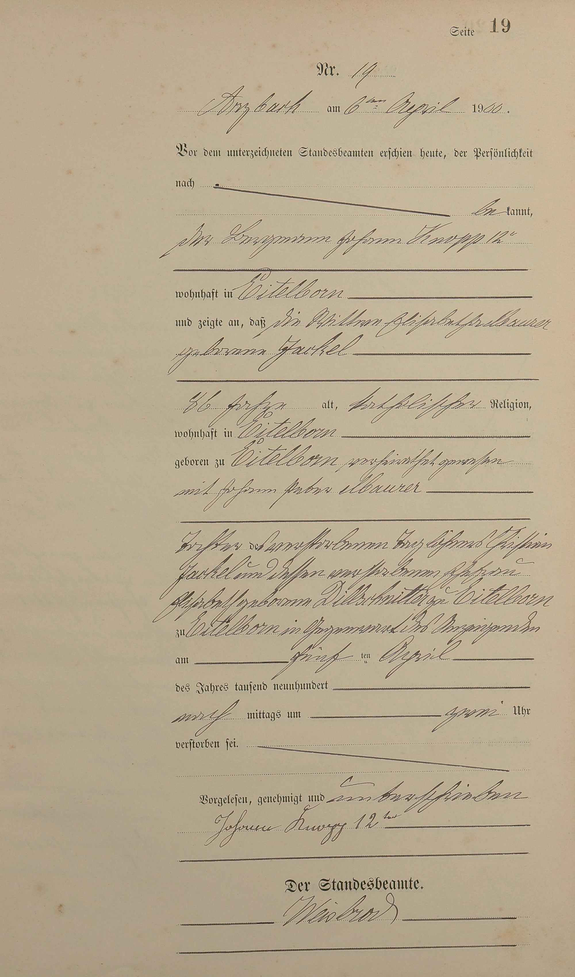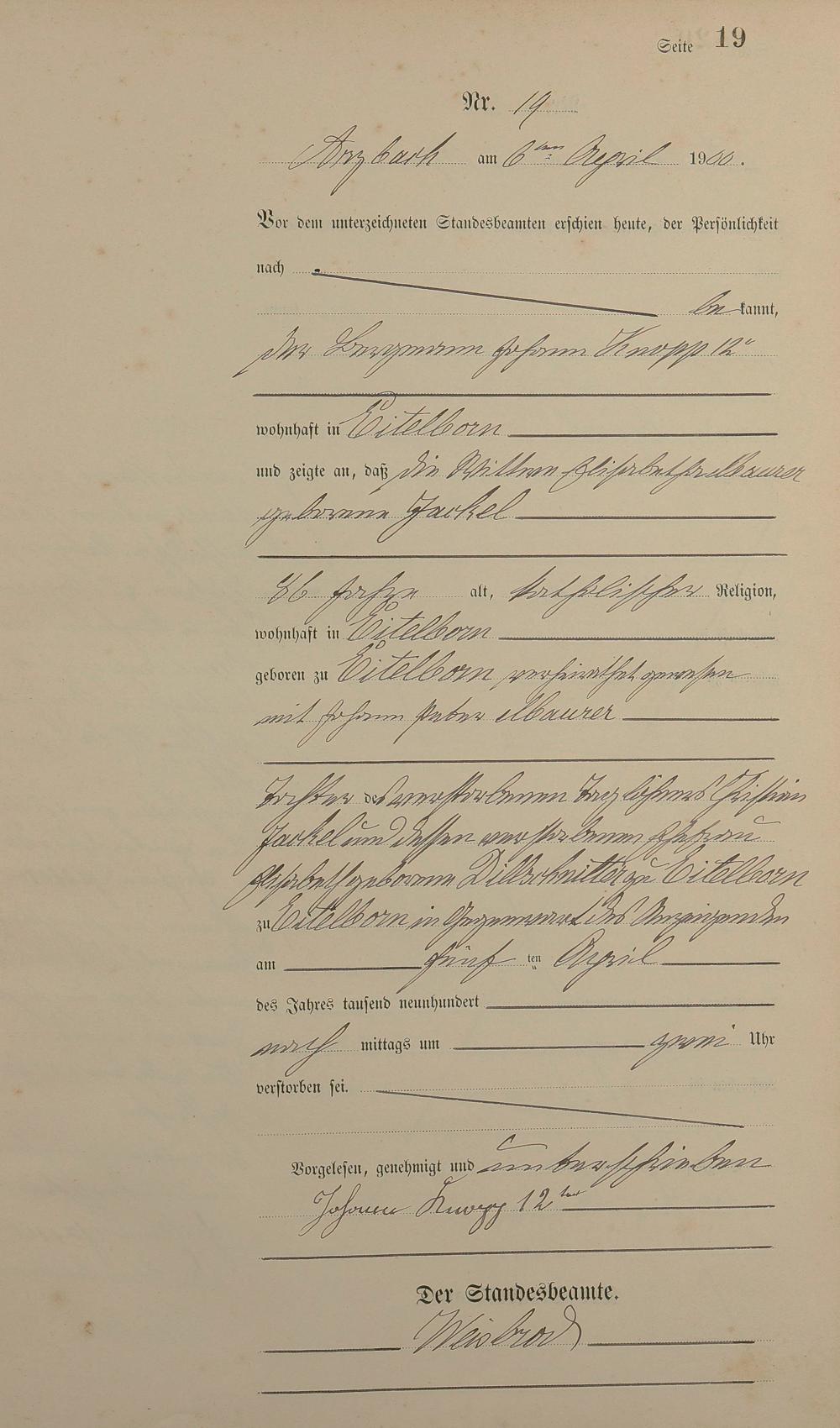 Sterberegister 1900