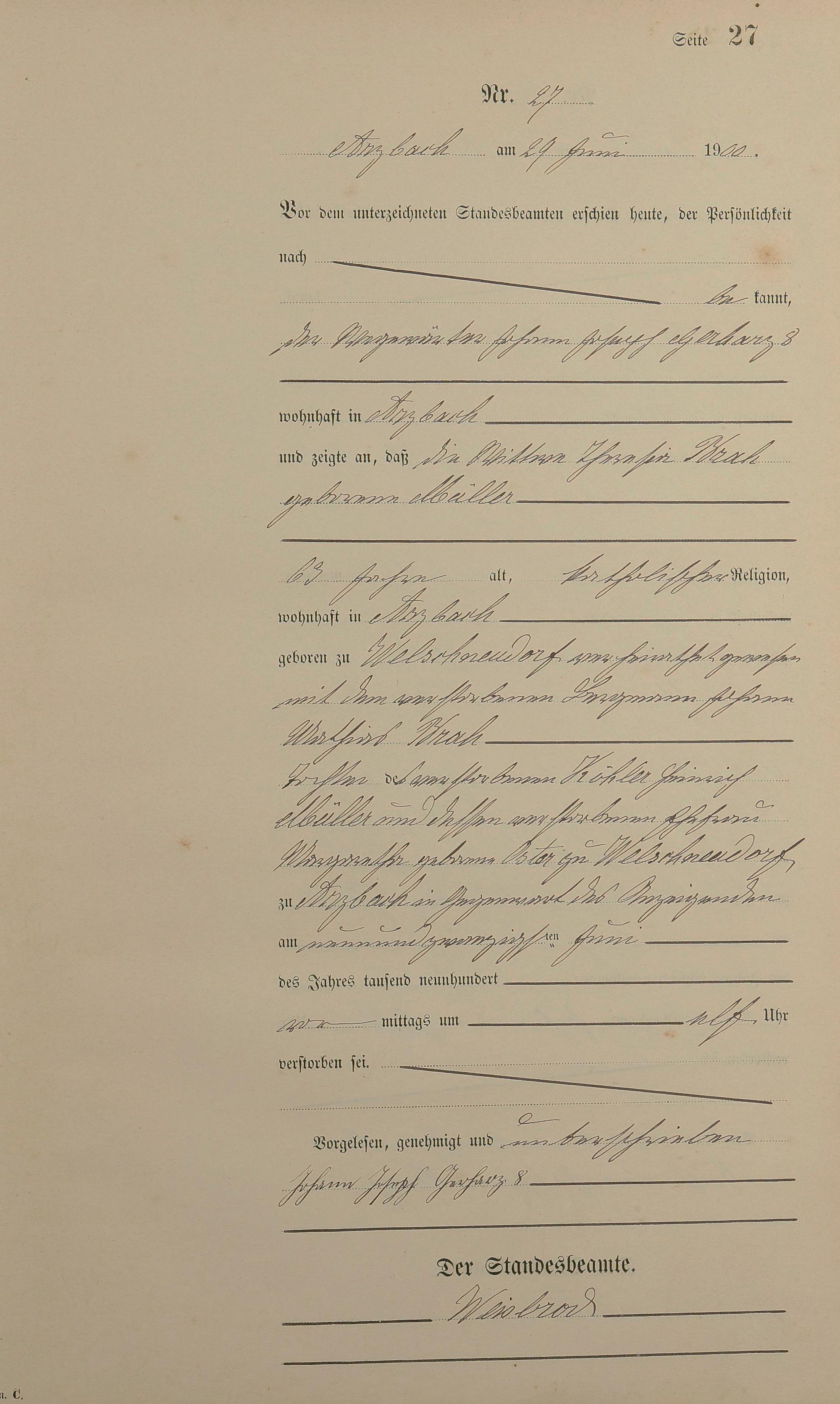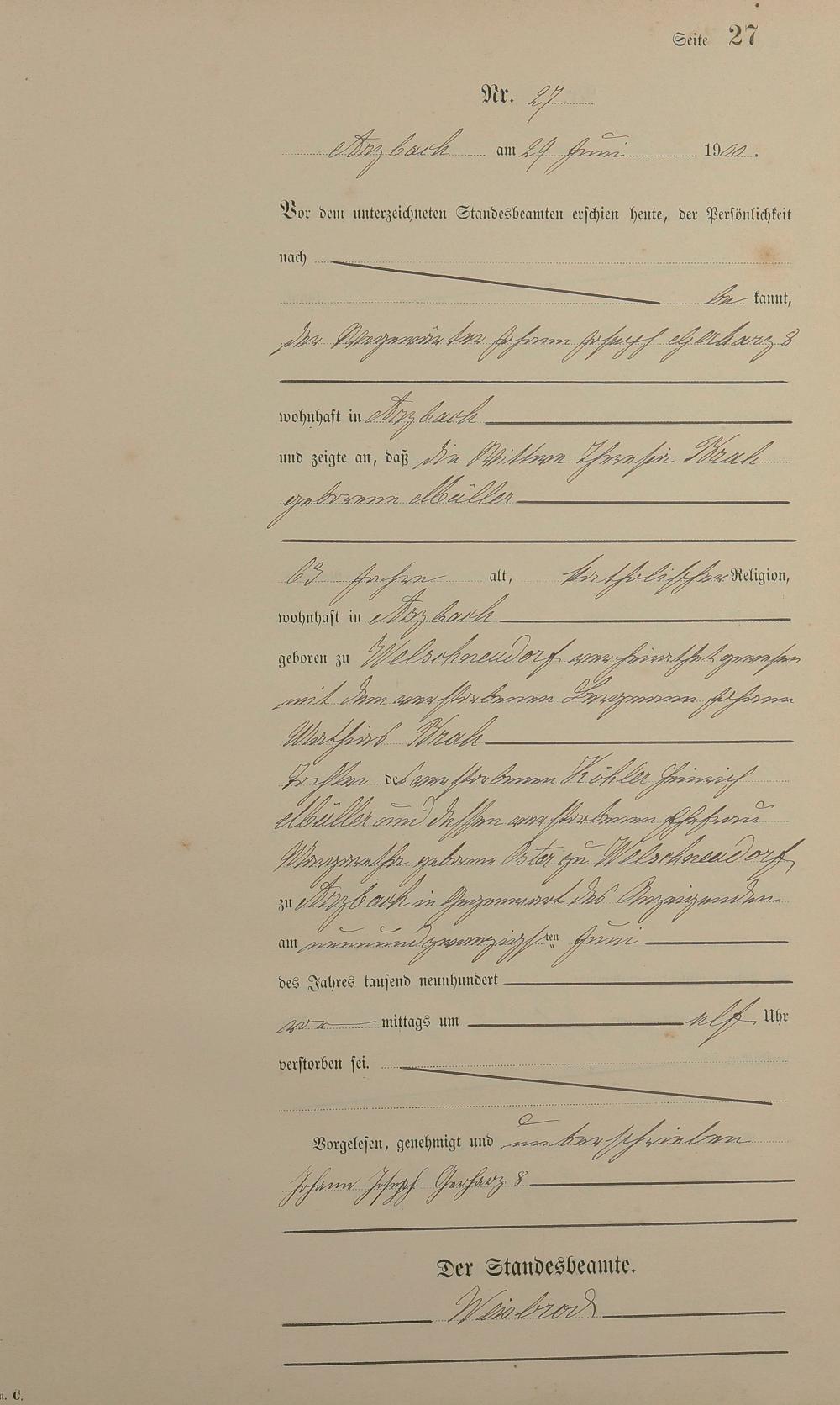 164/3: Sterberegister 1900