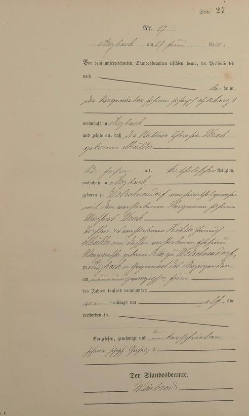 Sterberegister 1900