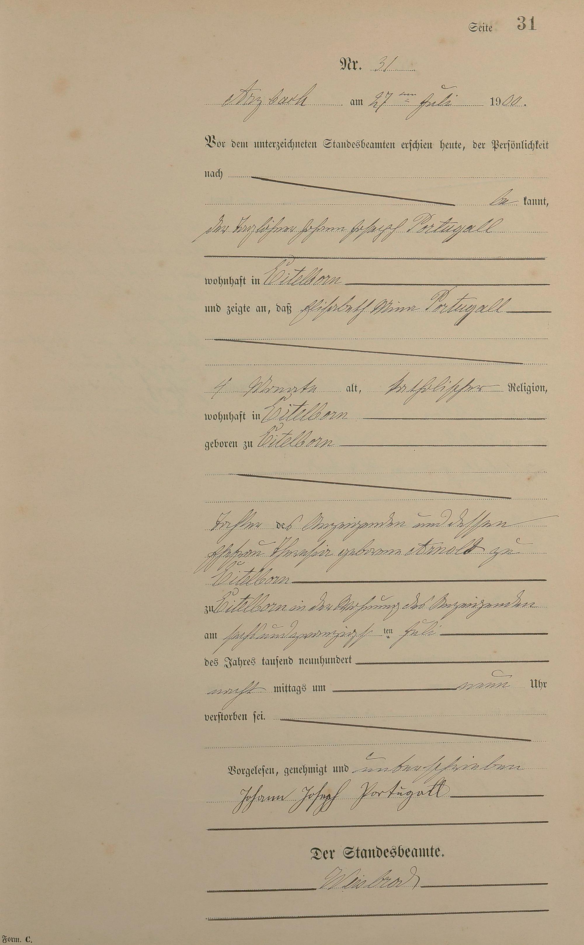 164/3: Sterberegister 1900