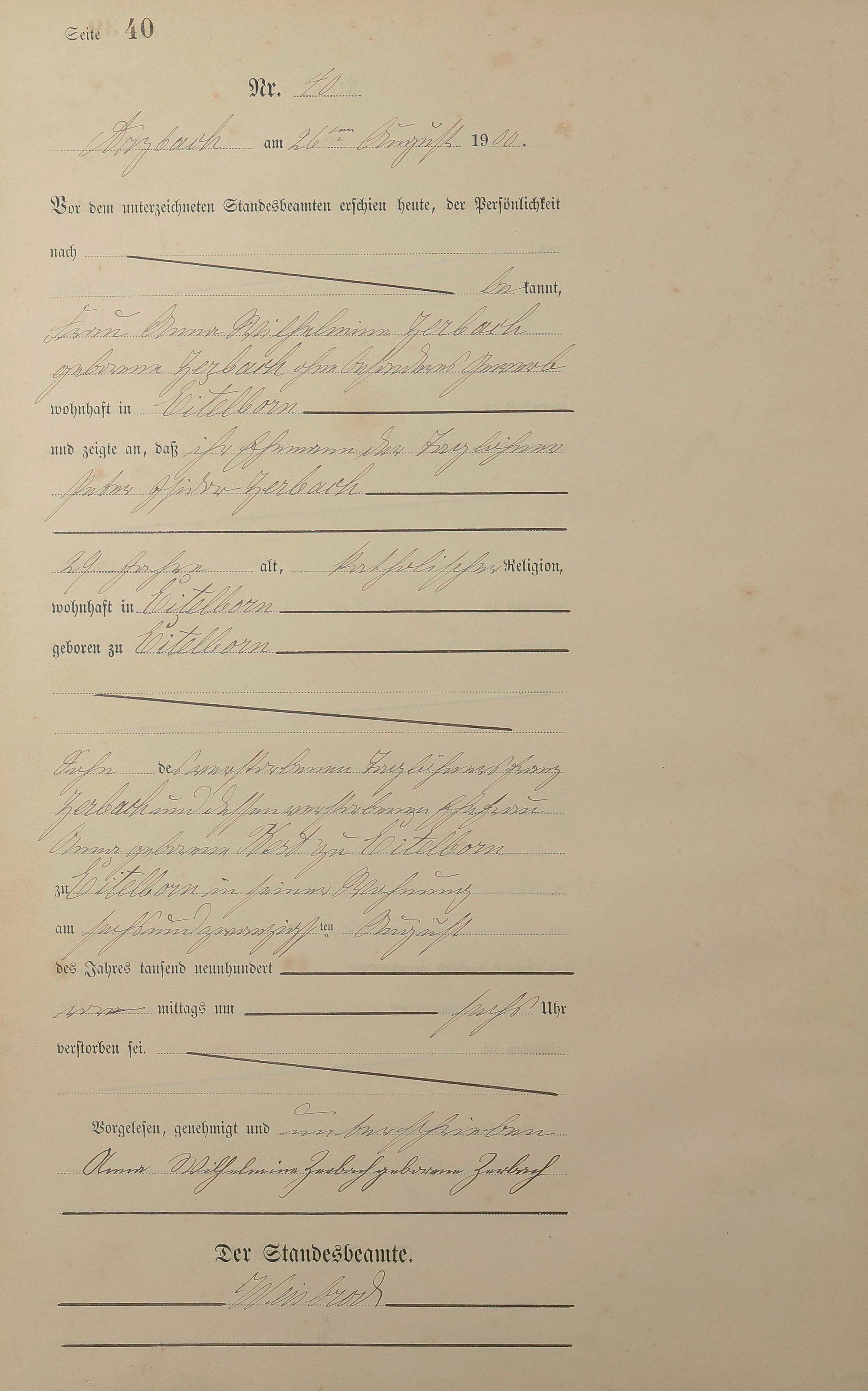 Sterberegister 1900