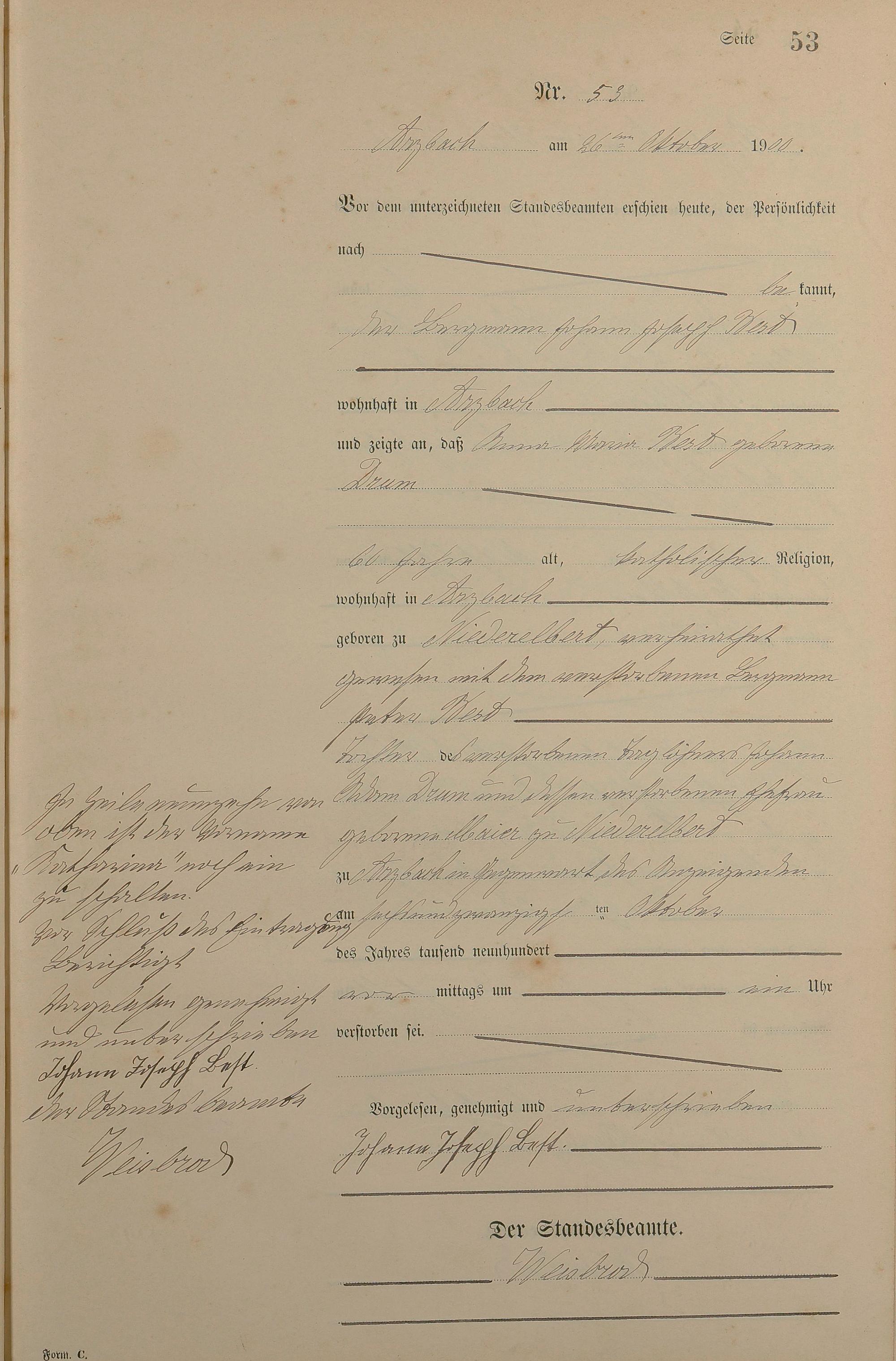 164/3: Sterberegister 1900