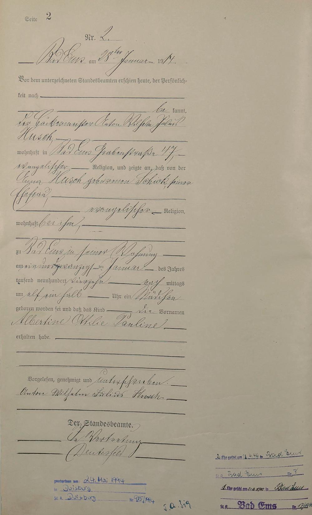 Geburtsregister 1914