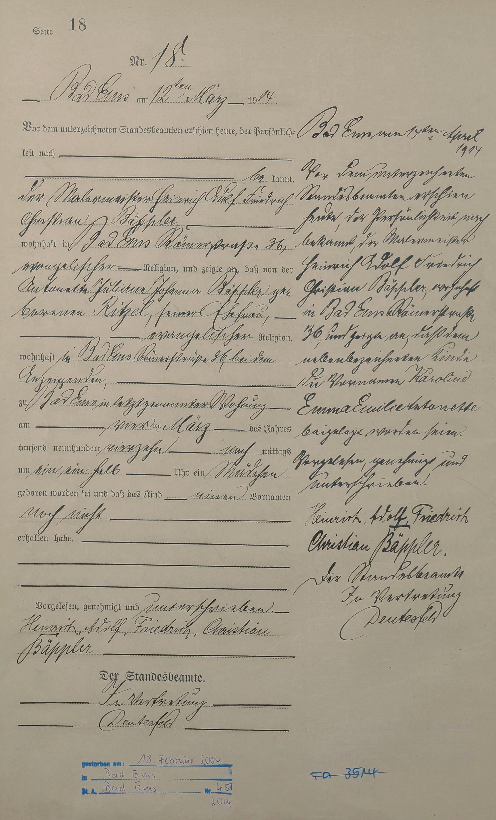 Geburtsregister 1914