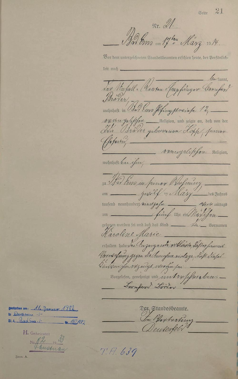 Geburtsregister 1914