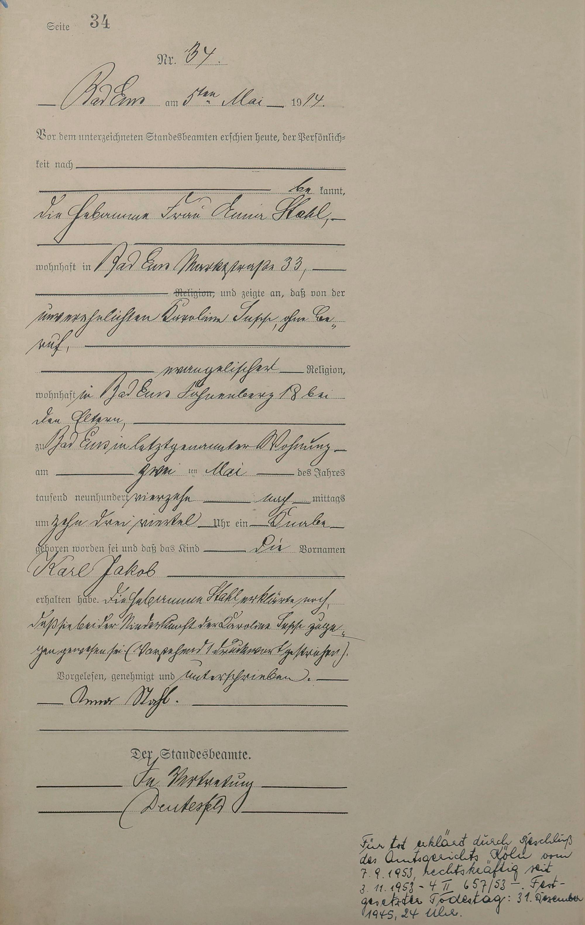 Geburtsregister 1914