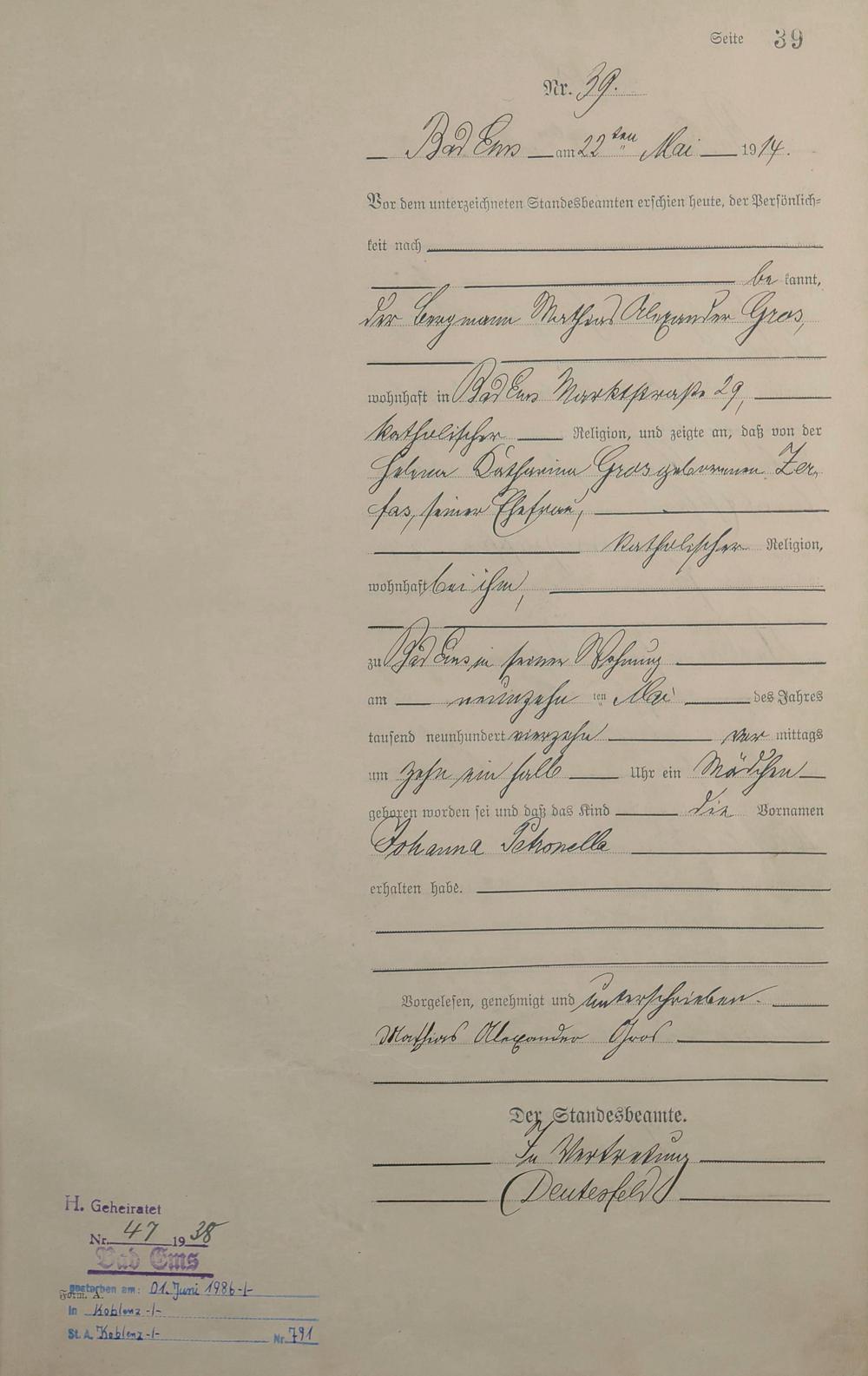 Geburtsregister 1914