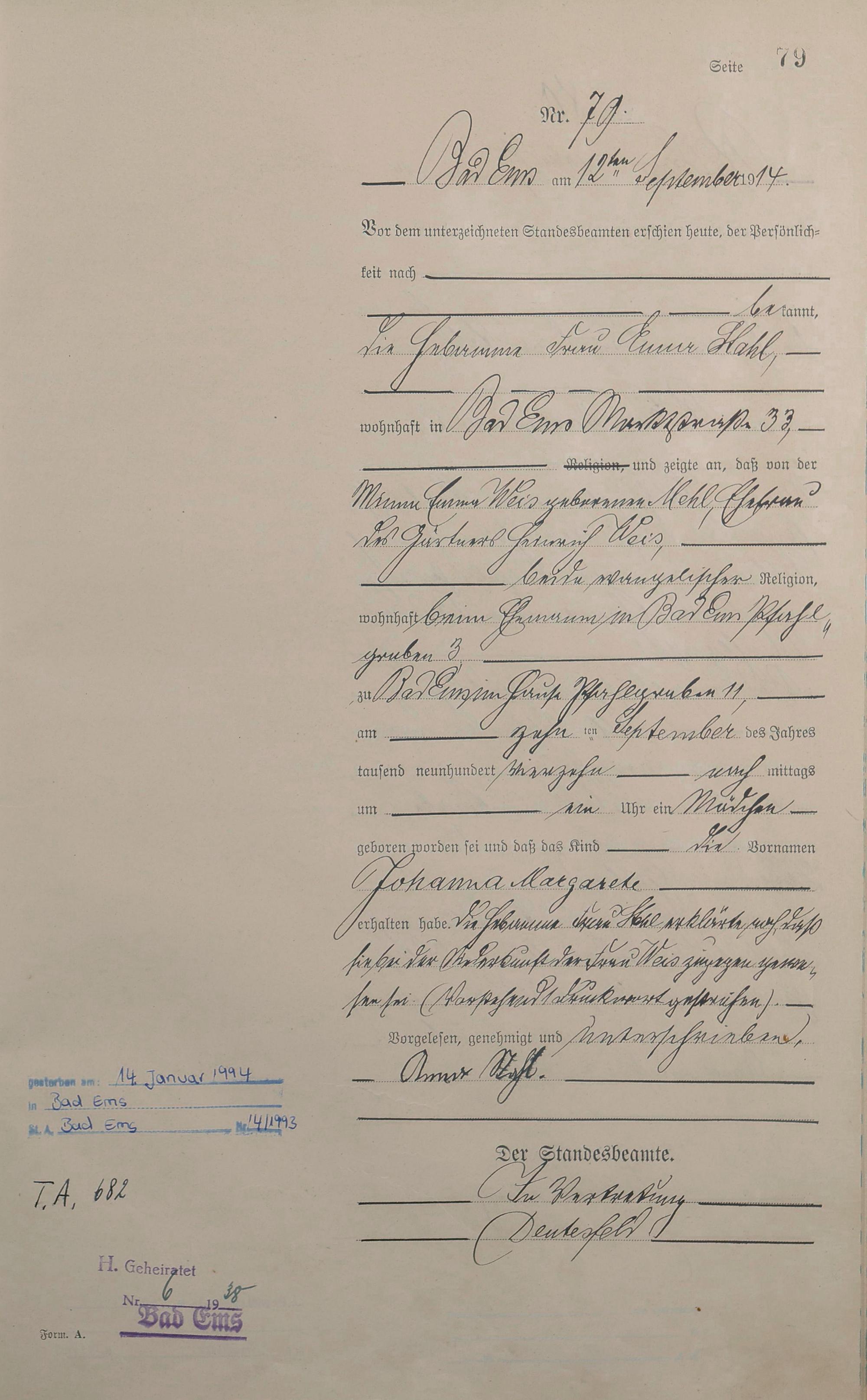 1290: Geburtsregister 1914