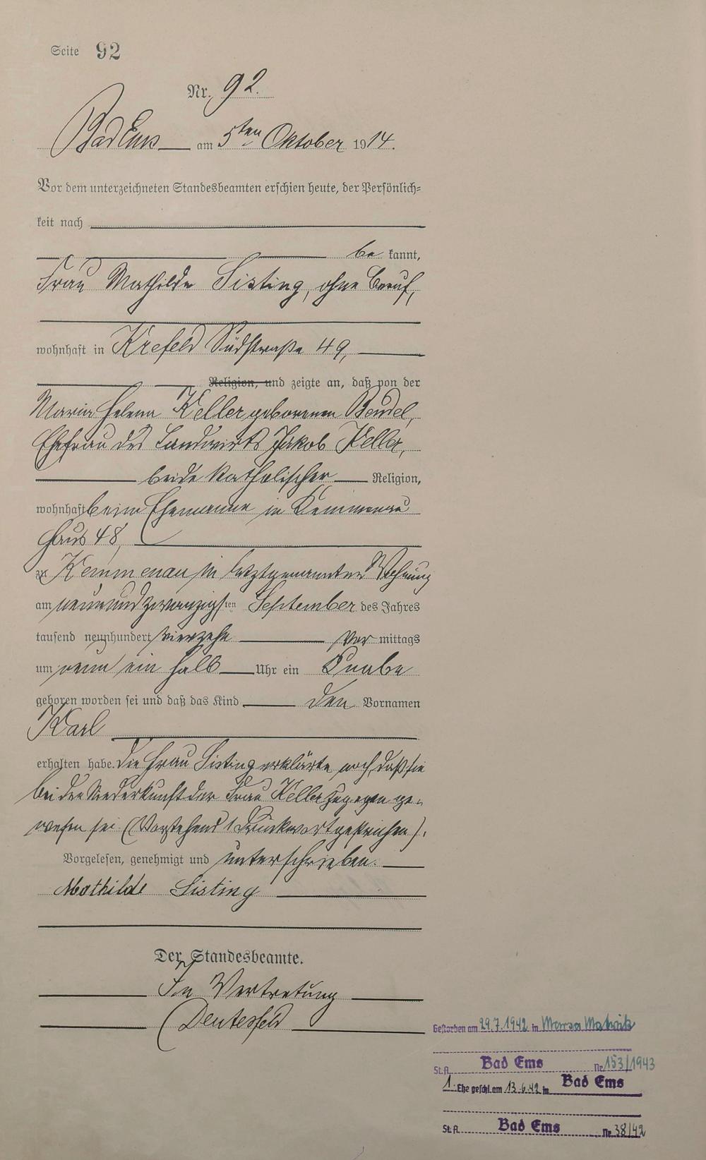 1290: Geburtsregister 1914