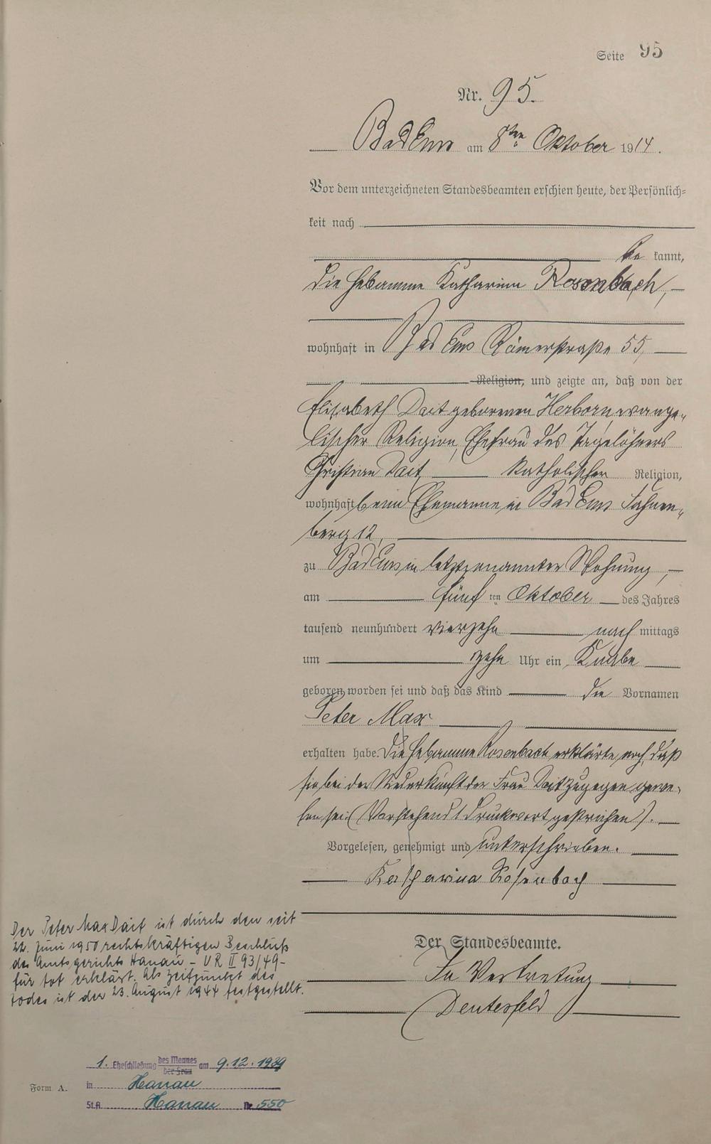 Geburtsregister 1914